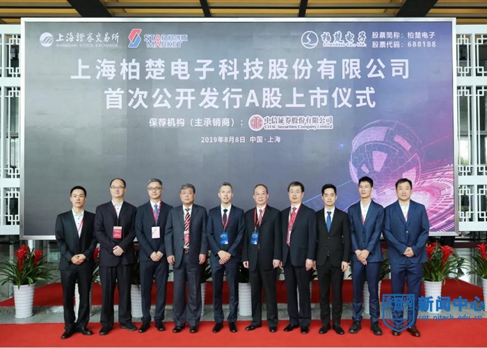 8月8日,我校04届自动化专业唐晔校友任董事长的上海柏楚电子科技股份有限公司登陆上海证券交易所科创板成功上市。党委书记芮鸿岩、校长乔旭发信祝贺。