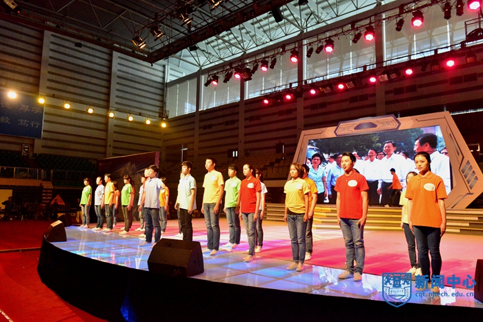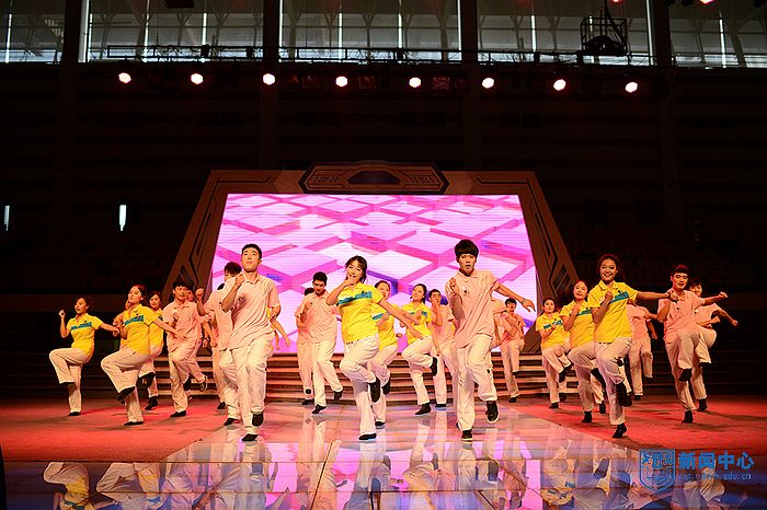 在迎宾机器人的指引下,各位嘉宾步入开幕式现场。开幕式在轻松欢快的视频《梦想的盒子》中拉开序幕,视频将多年来我校大学生科技创新的成果实效、政策制度、载体建设、氛围营造等情况巧妙的融合在一个七巧板盒子中,创新的设计、诙谐的语调让人耳目一新。“思维决定方向,创新决定出路,化工学院本科生创新基金强势来袭,你准备好了吗?”、“亭台楼阁、池馆水榭。建筑模型竞赛,让我们设计属于自己的精彩世界”、“热衷思考、享受创新,乐于分享、积极创造。创客梦工场,青春就来一起创!”,《科创就在身边》将各学院20余项科创品牌项目和创客中心、南京市大学生创业示范园等校级科创平台推介给全场观众。青春时代是人生最具梦想的时代,张力无限的创新梦想激发出强大的青春能量,大学生艺术团表演的舞蹈《梦立方》和歌曲《我们的梦》将青年学生敢于有梦、勇于追梦、勤于圆梦的青春朝气展现的淋漓尽致。
