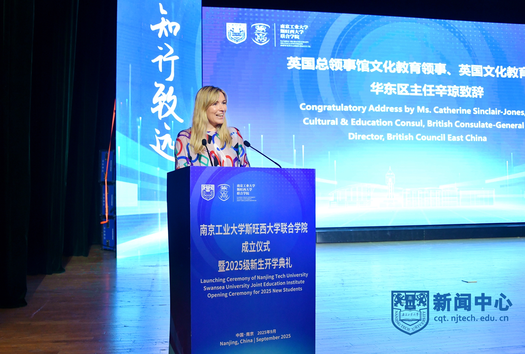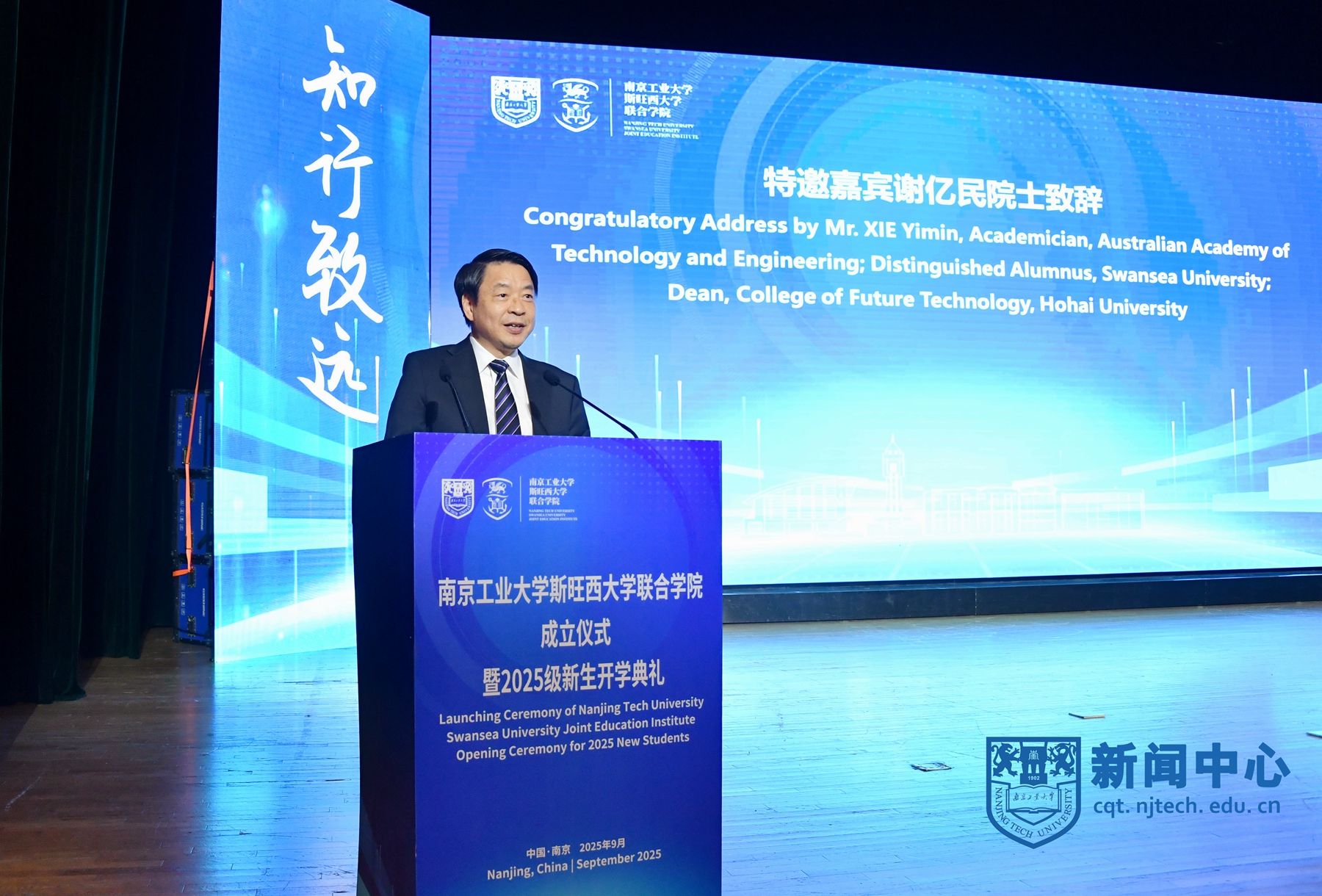 9月11日下午,南京工业大学斯旺西大学联合学院成立仪式暨2025级新生开学典礼在大礼堂举行。校长蒋军成、斯旺西大学校长Paul Boyle、中国教育国际交流协会中外合作办学分会理事长方军、江苏省教育厅二级调研员庾卫东、英国驻上海总领事馆文化教育领事Catherine Sinclair-Jones、澳大利亚技术科学与工程院院士谢亿民,副校长陆伟东、戴志晖、顾学红等出席典礼,开学典礼由副校长凌祥主持。