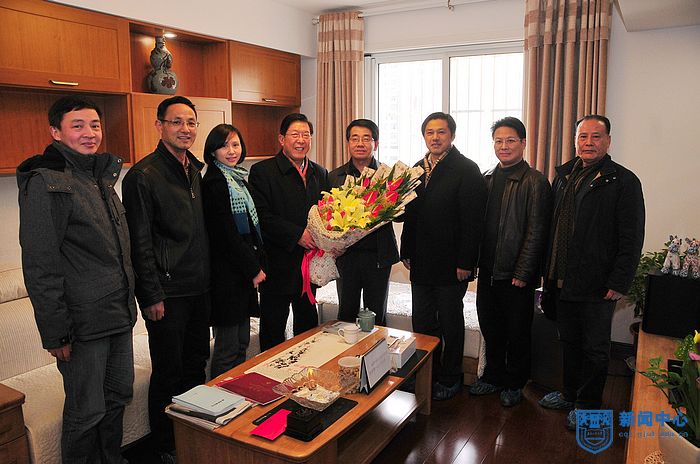 万马奔腾迎新春,一马当先超群英。马年春节即将来到,1月26日下午,校领导王德明书记、黄维校长亲切走访慰问了在校院士。副校长巩建鸣,校长助理、组织部部长吴胜红,校长助理、校长办公室主任何学军,党委办公室主任黄步军,人才资源部常务副部长刘永福等陪同。无论是在黄维院士和唐明述院士家中,还是在欧阳平凯院士办公室,都是欢声笑语,暖意融融。校领导与各位院士围绕协同创新、人才培养、学科发展、科学研究等内容进行了热烈的讨论和交流,并认真听取各位院士的意见和建议。徐南平院士因公务出差在外,校领导专门电话致以慰问。校领导感谢院士们为学校发展做出的突出贡献,并代表全校师生员工致以新春问候与祝福。院士们对校领导的看望和慰问表示感谢,并共同祝愿学校事业在新的一年里百尺竿头,更进一步!(文:人才资源部;图:迅影工作组;校对:刘艳;编辑:新闻中心)