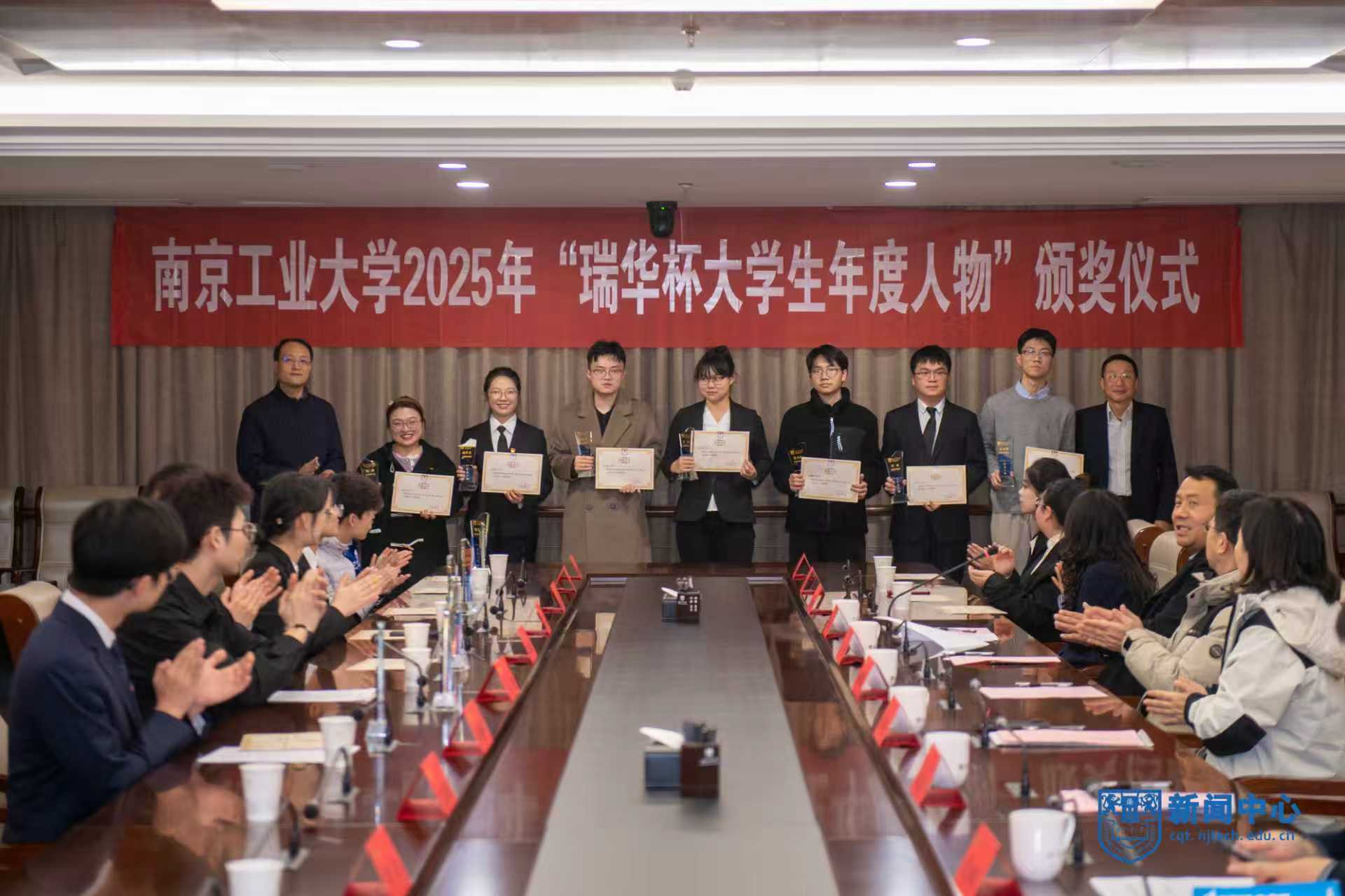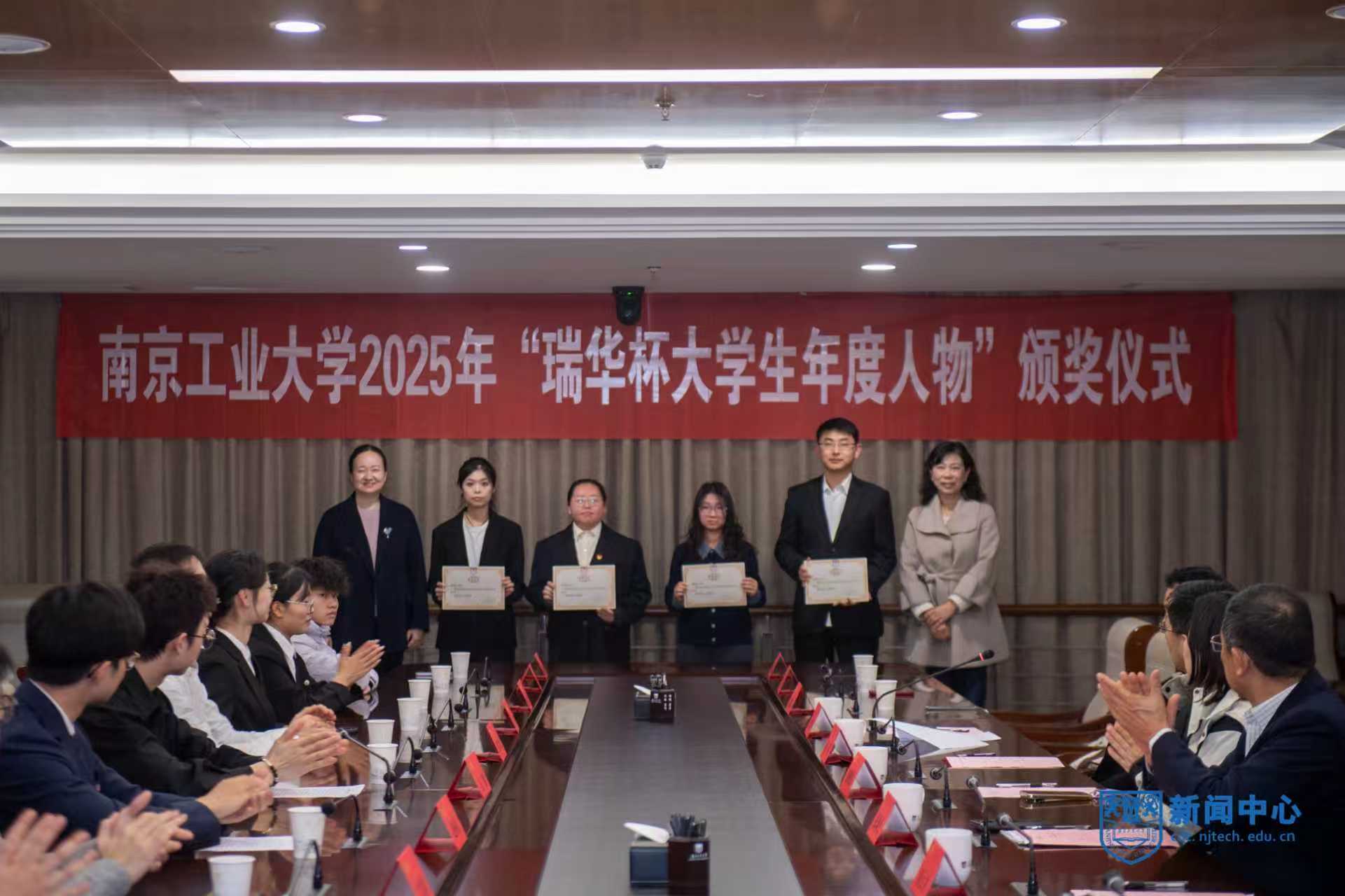 12月24日下午,学校在江浦校区弘毅楼三楼会议室举行“瑞华杯大学生年度人物”颁奖仪式。江苏省瑞华慈善基金会秘书长张颂杰、高校资助部主任赵晓娟、高校资助部项目经理陈辉,副校长刘大卫出席仪式。活动由党委学生工作部副部长王永刚主持。