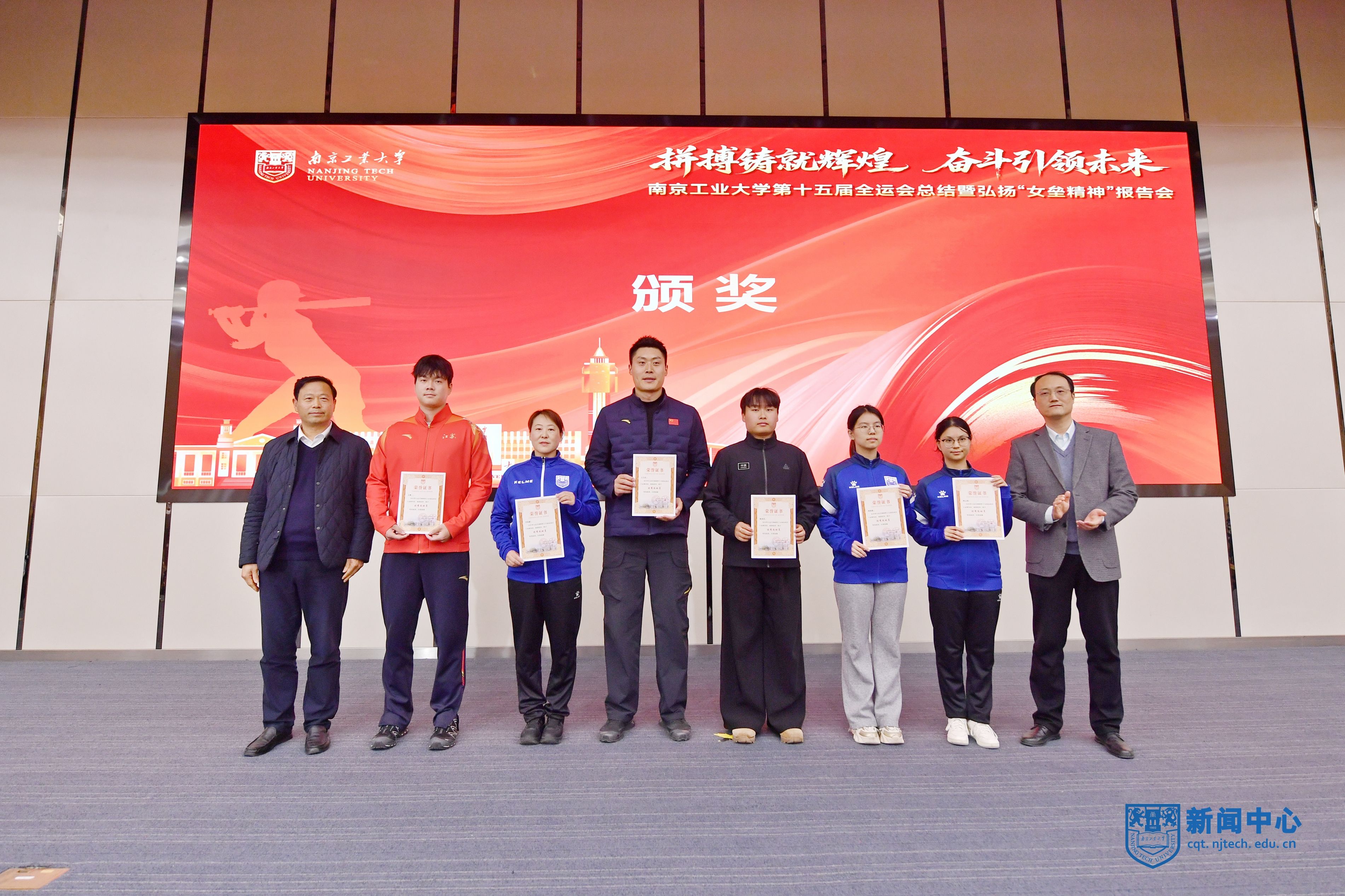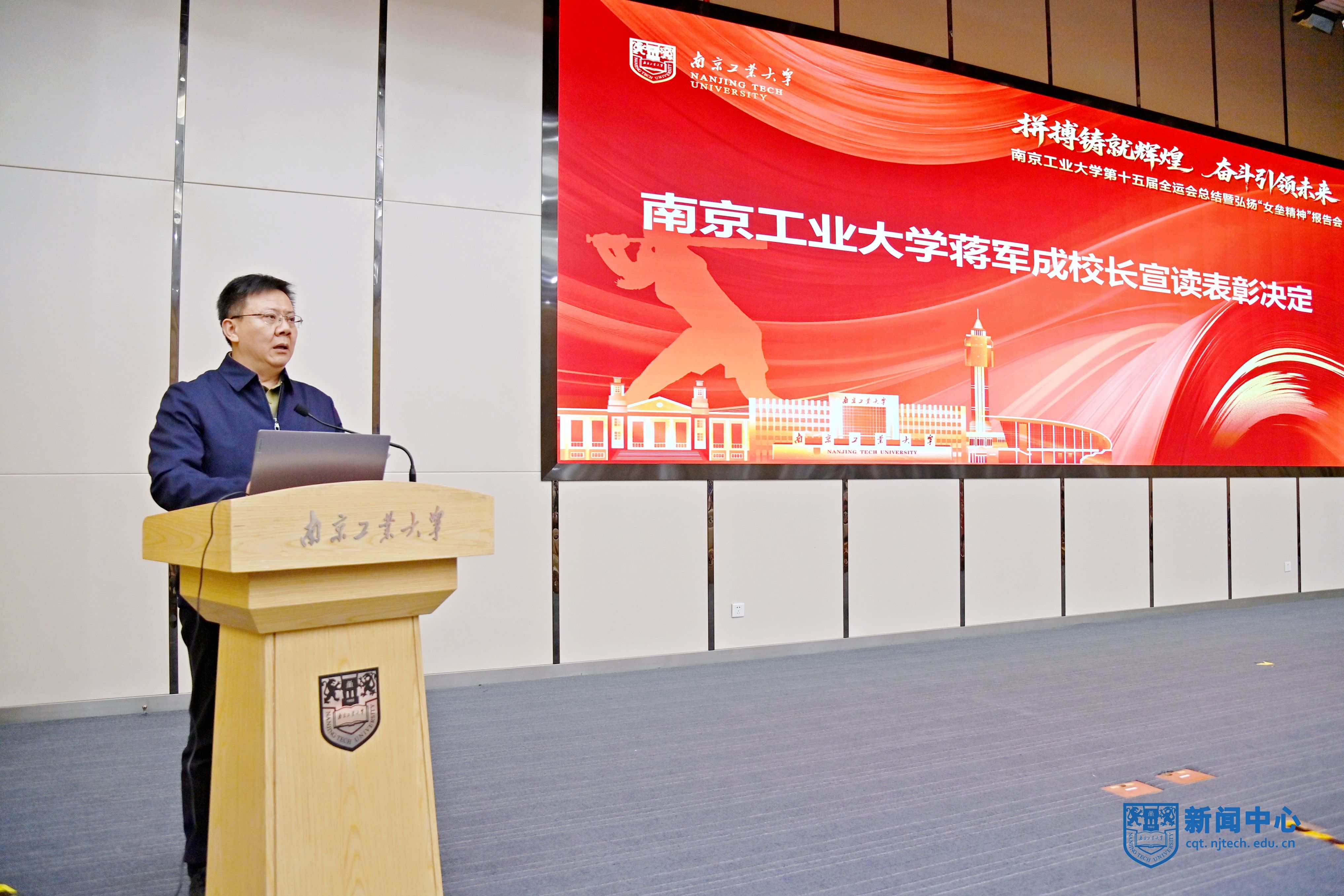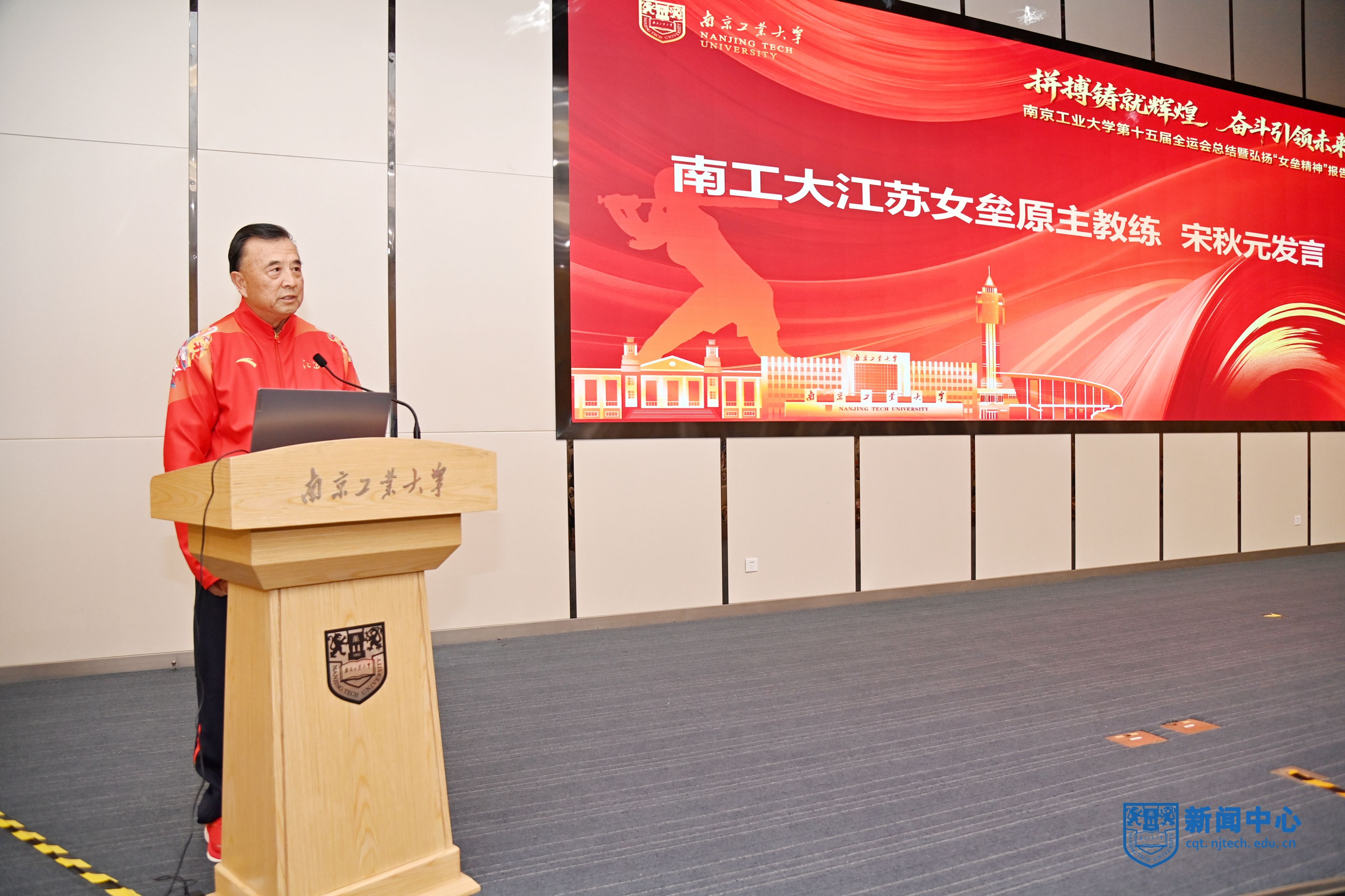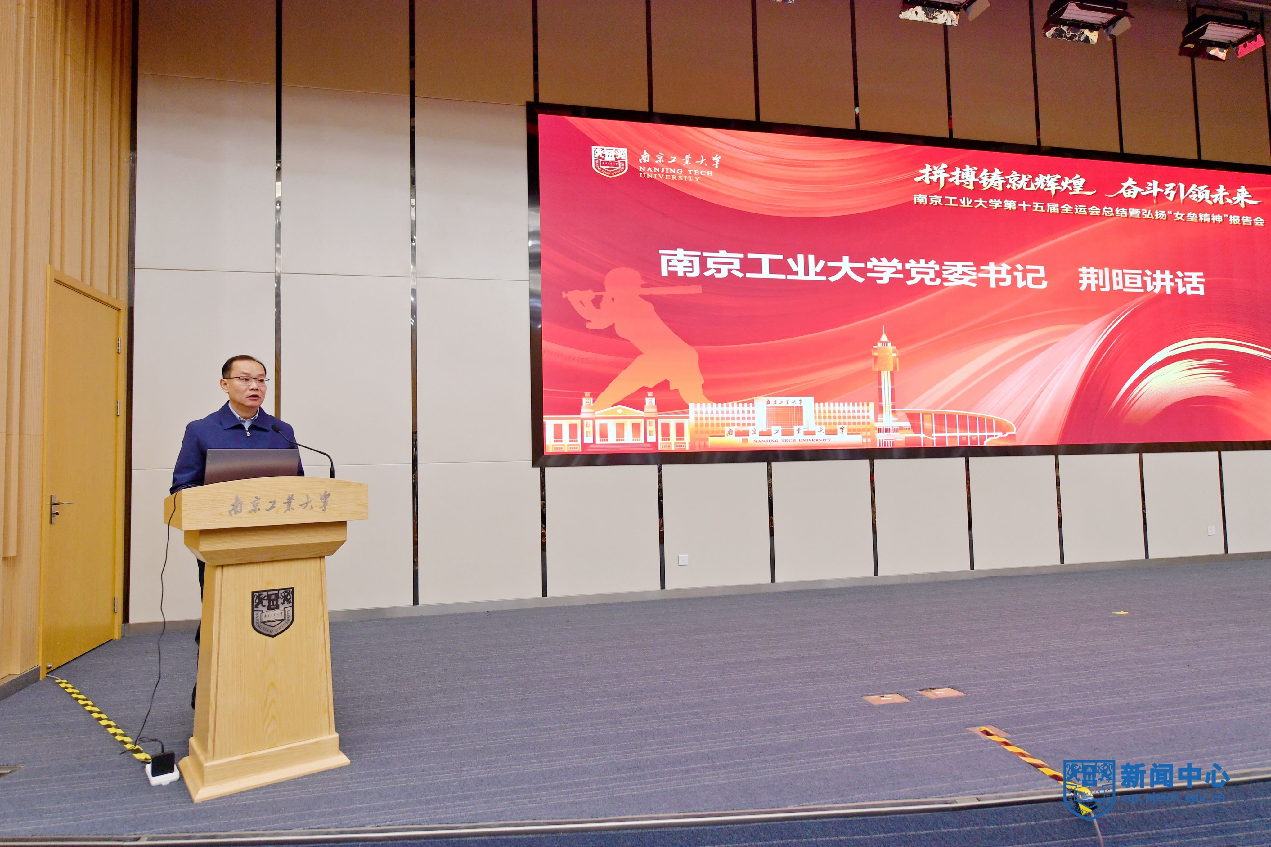 校党委书记荆晅在讲话中回顾了我校师生参加第十五届全运会的奋斗历程和取得的优异成绩,强调要锚定育人目标,勇当体教融合发展“排头兵”;聚焦特色发展,擦亮中国垒球学院“金字招牌”;弘扬“女垒精神”,汇聚师生团结拼搏的不竭动力,让中华体育精神薪火相传,奋力开创学校各项事业高质量发展新局面,为建设教育强国、体育强国、健康中国贡献南工大更多智慧和力量。