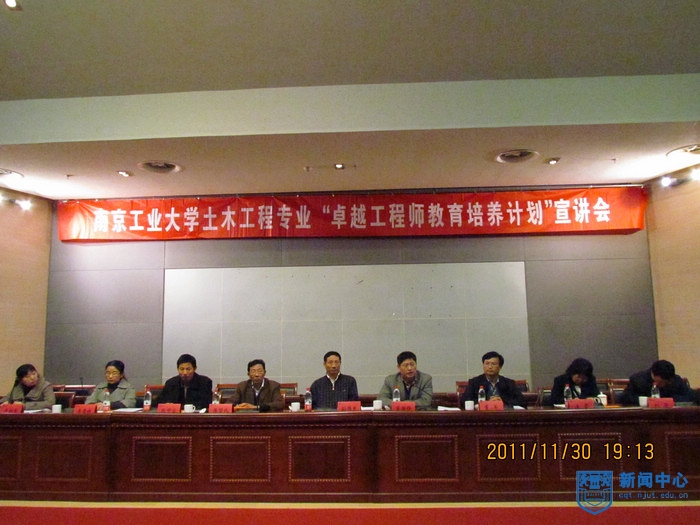 南京工业大学是教育部“卓越工程师教育培养计划”首批试点高校,土木工程专业是两个首批试点专业之一。为切实推进我校“卓越计划”工作的深入开展,11月30日晚,土木学院在逸夫图书馆报告厅隆重举行“土木卓越计划”宣讲会,副校长孙伟民教授、教务处处长管国峰教授、土木学院有关领导和骨干教师、土木工程专业2010级-2011级400余位同学参加。学院党委书记蒋留兆主持会议。