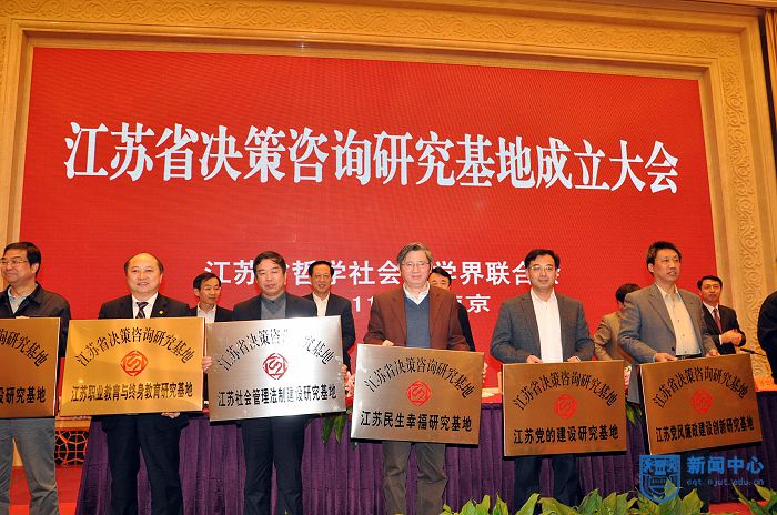 “江苏省决策咨询研究基地”是在省委省政府的直接支持下,在省委宣传部和江苏省哲学社会科学界联合会具体负责评审下进行的。该基地在选题确定、功能定位等方面受到了省委书记罗志军、省长李学勇的高度重视和直接关心。建立这一高层次社科研究基地,旨在为省委、省政府决策科学化,为江苏经济社会科学发展提供长期稳定的咨询服务平台和有效机制,提高研究成果的社会利用率,使哲学社会科学界成为推动科学发展的思想库。自招标公告发出后,全省共有近50所高校、党校和社科院(所)组织申报,同时有30多个省级机关单位参加联合申报。根据招标公告要求,我校作为研究基地的第一责任单位,联合江苏省人大常委会法工委、北京师范大学哲学与社会学学院进行申报;在校领导的支持和文科首席教授王雪峰副书记的亲自组织下,积极整合全校相关研究力量,多次召开会议组织论证,并最终成功获得批准。