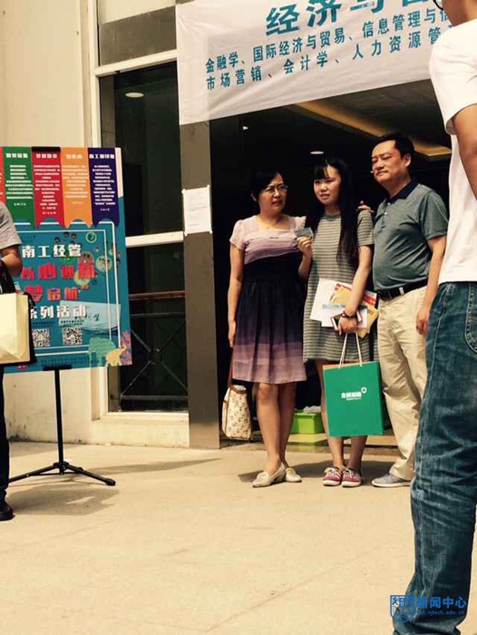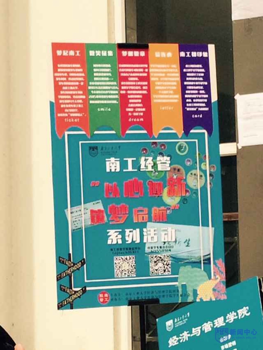 “以心迎新,以梦启航”,在经济与管理学院的新生报到处,可以看到写着这样一句口号的活动牌。陆续有家长和新生在活动牌边合影,仔细看还能看见新生手上拿了一张“火车票”。