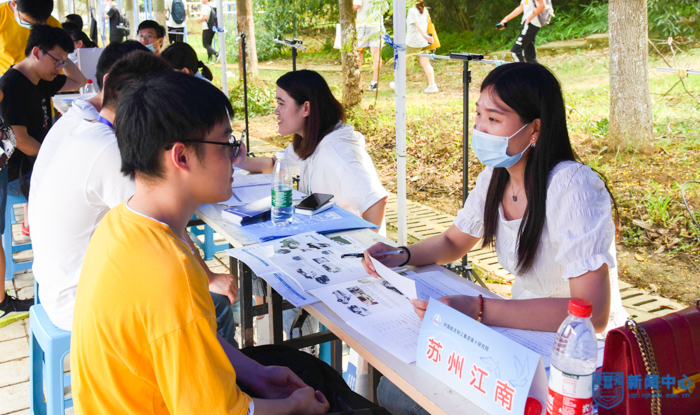 9月16日下午,南京工业大学首场2021届毕业生专场招聘会在江浦校区体育馆前广场举办。
