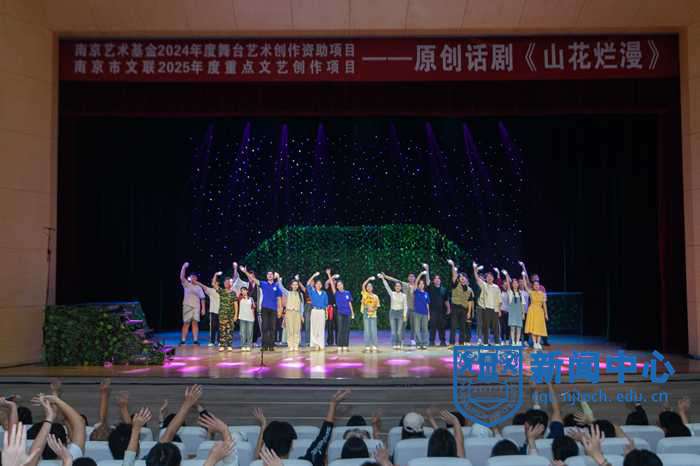 9月21日至23日,我校大学生艺术团话剧团原创话剧《山花烂漫》在博雅堂连续上演4场。南京市文联党组书记、常务副主席陈政,南京市文联党组成员、副主席王子,南京市文化和旅游局艺术处处长饶泽安,南京市文联创研部三级调研员刘杉杉,国家一级演员、原南京艺术学院电影电视学院院长蔡伟,国家一级编导、南京市舞蹈家协会主席李坚,南京市艺术学院戏剧与影视学院院长、江苏省电影家协会副主席陈捷等专家,副校长刘大卫及数千名师生现场观看。