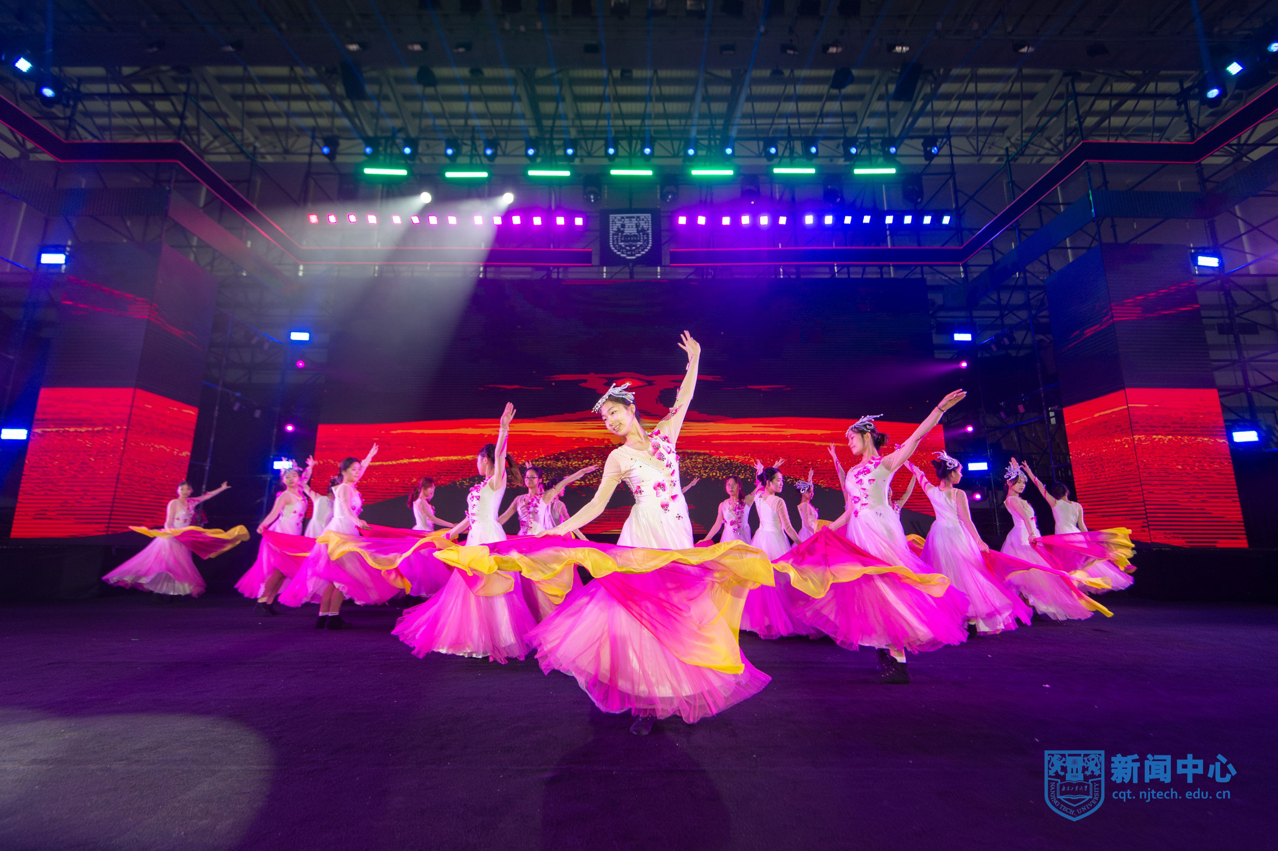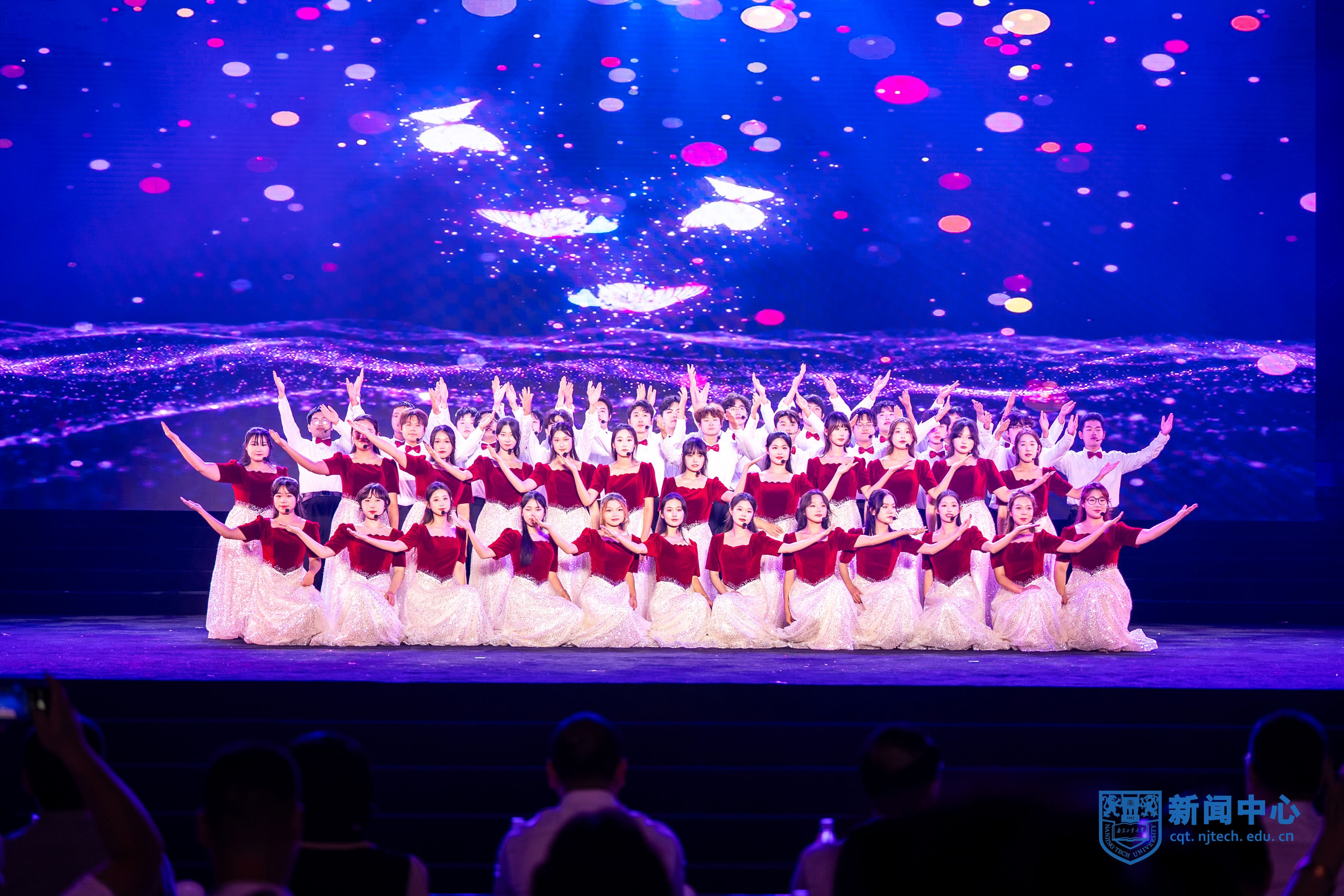 晚会以气势磅礴的管乐合奏《庆典序曲》《钢铁洪流进行曲》开篇,绚丽夺目的激光秀《闪耀南工大》点燃了现场师生的热情;钢琴协奏曲《黄河》的激昂旋律与音诗画《启梦炫歌·绘青春序章》的表演激发青年学子心中的热血与斗志;新民乐合奏《哪吒》以民族乐器与摇滚重新演绎新时代青年的蓬勃张力;舞龙舞狮《龙腾狮跃》象征着国泰民安、海晏河清的盛世气象;大合唱《世界赠予我的》传递世界赠予的爱与希望;原创话剧《永恒的信仰》展现出“忠党爱国、淡泊坚韧、求实惟先、扶掖后学”的时钧精神;舞蹈《喜上眉梢》以唯美舞姿勾勒出月下花海的诗意画卷;武术融合节目《炫武乾坤》尽显中华武术的沉稳劲道与彩带的飘逸灵动;肢体剧《我们的世界》用风趣幽默的肢体语言,还原青春校园的日常生活;社团串烧《社彩纷呈》展现丰富多彩的社团文化和青春活力;歌伴舞《领航新时代》回望抗战胜利的峥嵘岁月、描绘了新时代的壮丽画卷。