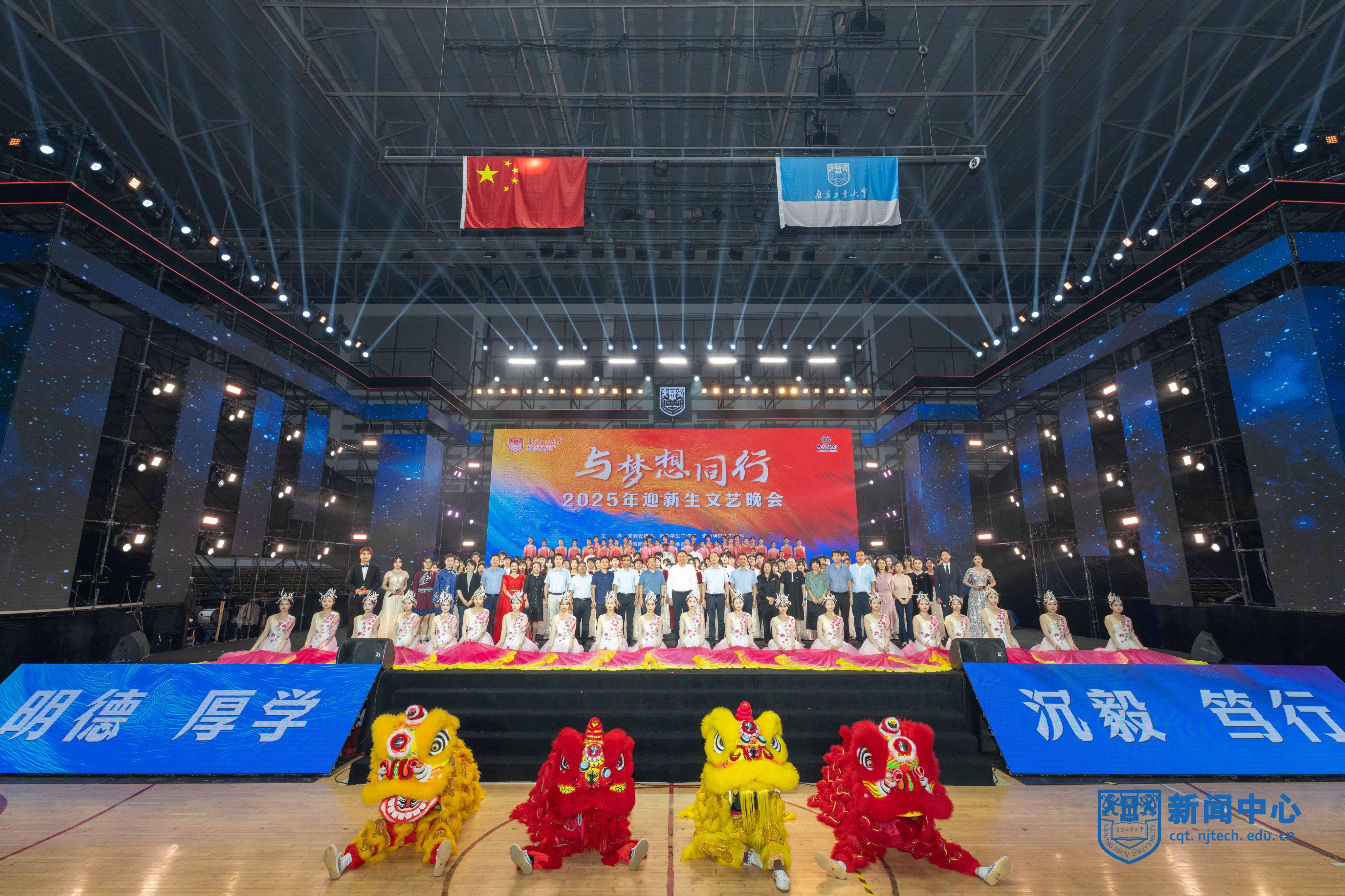 9月27日、28日晚,“与梦想同行”2025年迎新生文艺晚会在江浦校区行健体育馆举行,音乐台、博雅堂现场同步直播。陆军工程大学指挥控制工程学院学员十大队政治委员张振国上校、学员三十二队政治教导员郑鹏少校,中国银行南京分行副行长、南京江北新区分行党委书记、行长刘军,副校长陆伟东、郭万牛、刘大卫,党委常委张健、夏侃、黄锁明,相关职能部门、各学院负责人,军训教官代表,新生辅导员,2025级本科生、研究生以及留学生等欢聚一堂,共同感受现场的精彩纷呈。