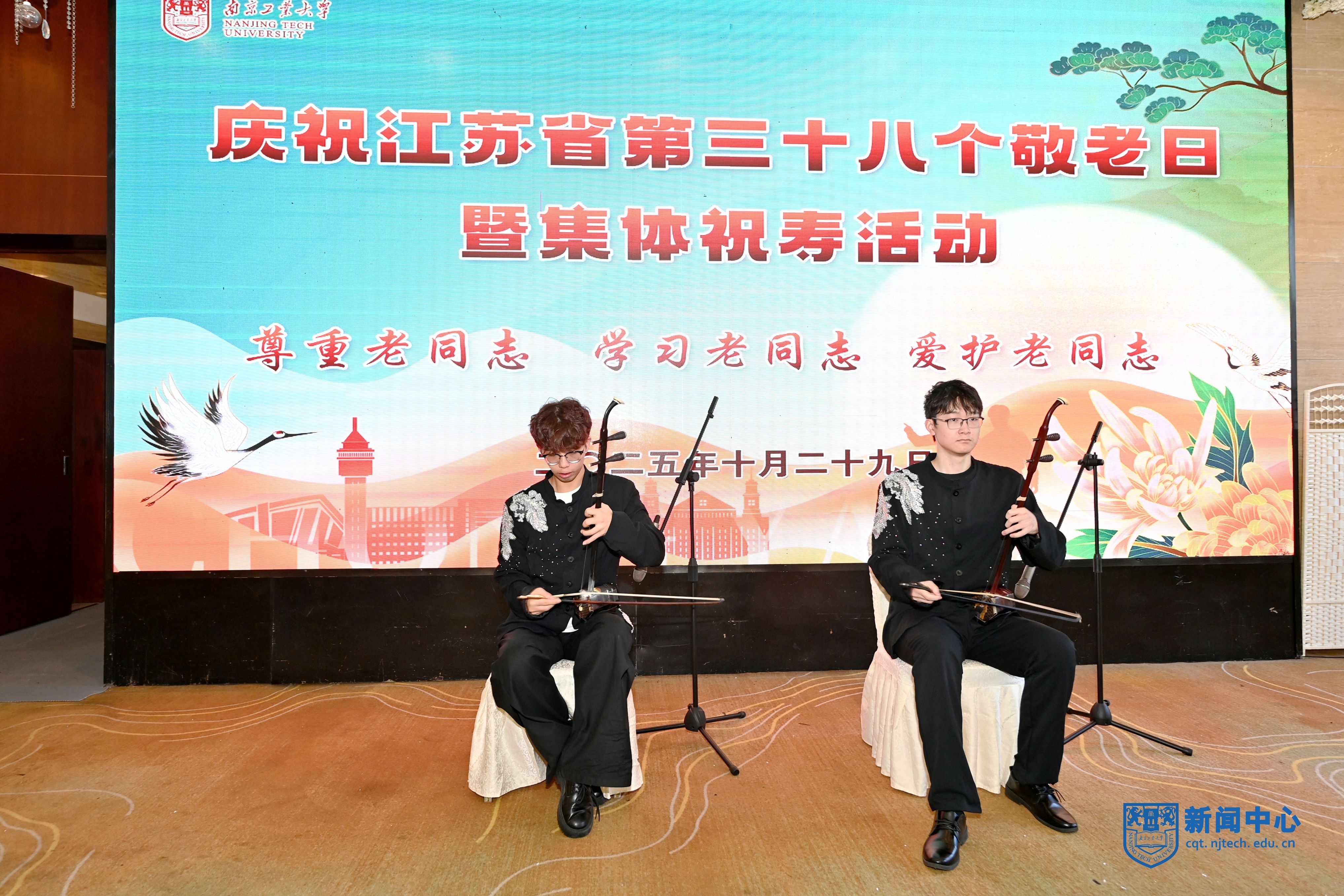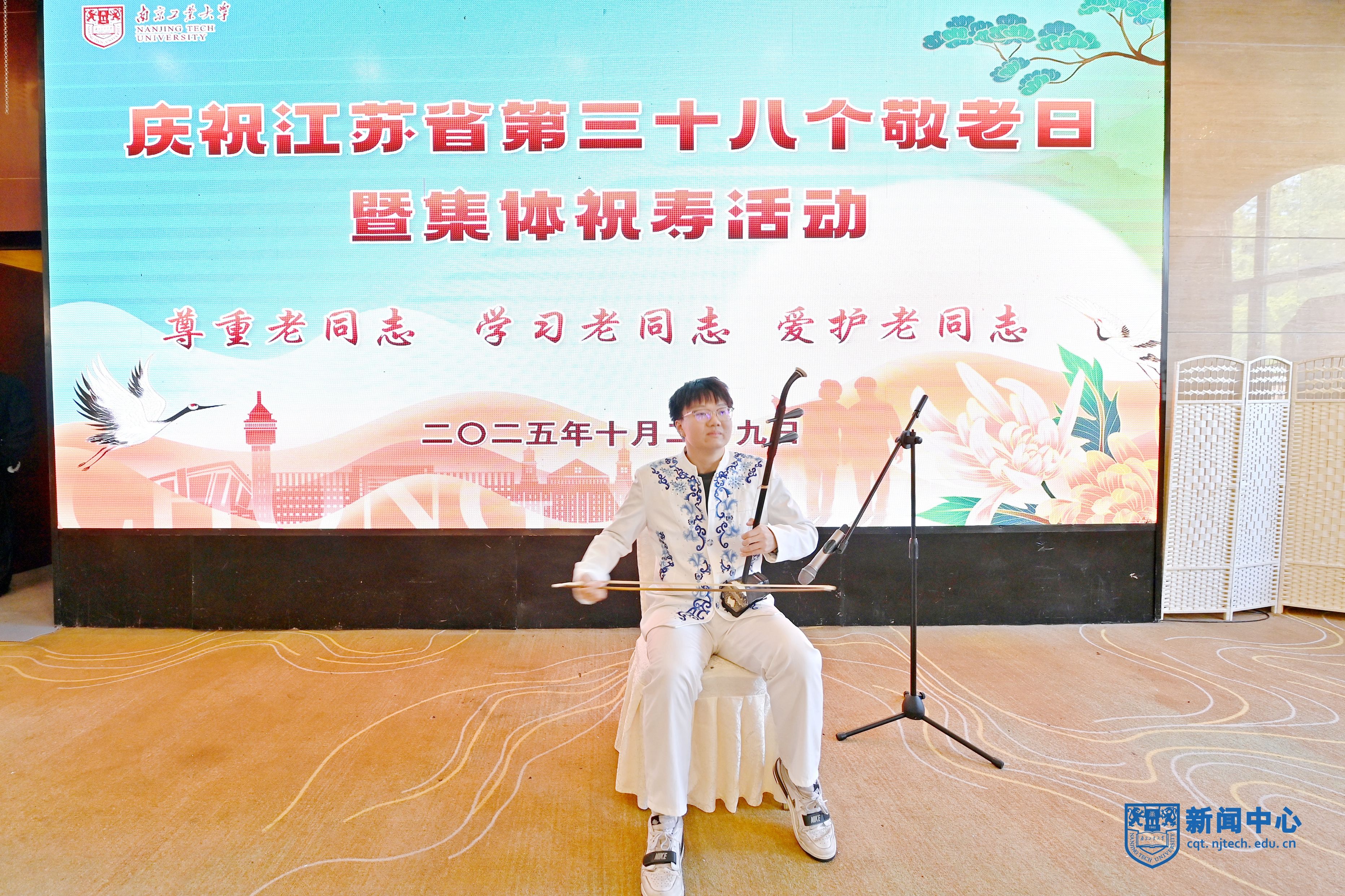 张健宣读了寿星名单。计划财务处处长叶青松、寿星代表沈复中先后发言。与会领导向寿星敬献鲜花、寿礼,并合影留念。校大学生艺术团二胡演奏《赛马》和《战马奔腾》,老年大学舞蹈团表演《让祖国更美丽》。