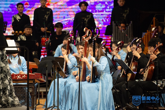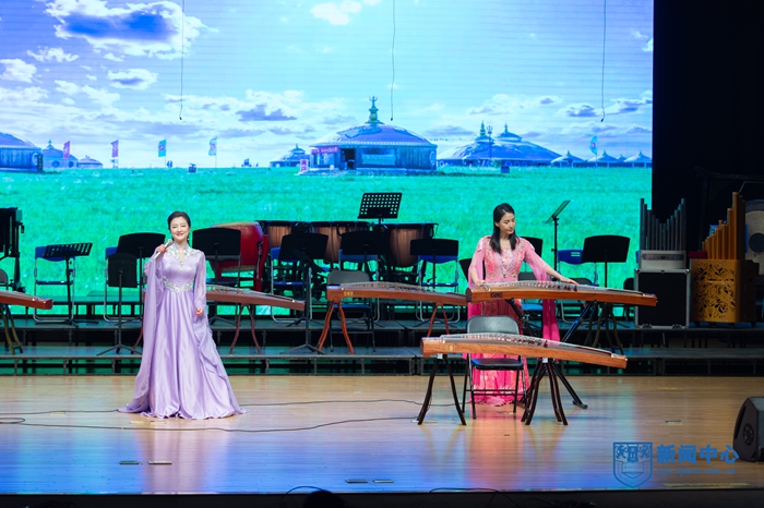 音乐会在大学生艺术团民族乐团的民族管弦乐《新赛马》的激昂旋律中拉开帷幕;《红楼梦序曲》细腻婉转、情思缱绻;《延河随想》豪迈激昂,包含力量;《再唱山歌给党听》深情动人,赞颂新时代精神风貌。大学生艺术团合唱团的《锦瑟》将古典诗词与和声艺术完美融合,《落叶归根》以深情歌声诉说游子的乡愁。钢琴独奏《山丹丹开花红艳艳》将陕北民歌的质朴与钢琴的灵动巧妙结合。流行与经典歌曲串烧《君》《伯虎说》《鹿 be free》以多元风格点燃现场气氛。方晶晶与曾小燕合作的《莫尼山》尽显民族独特风情与大美意境。