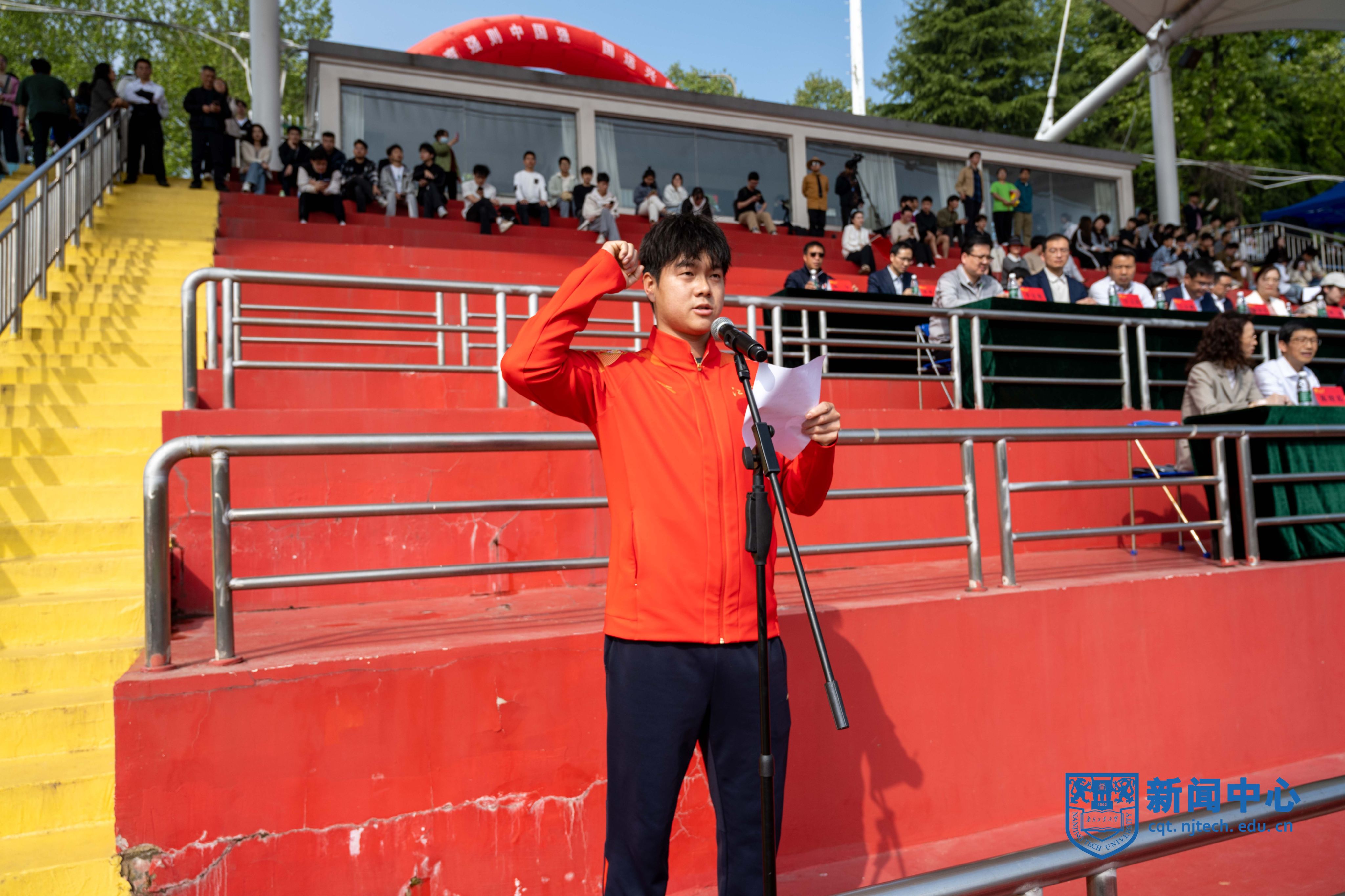 中国男子棒球队队长、江苏男子棒球队第十四届、十五届全运会夺冠主力投手、体育学院运动2302班王唯一同学,垒球国际级裁判、体育学院蔡协清老师分别代表全体运动员和裁判员进行宣誓。
