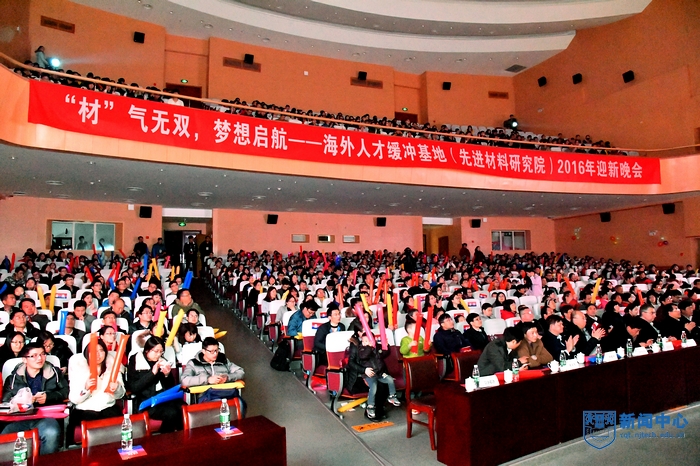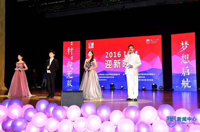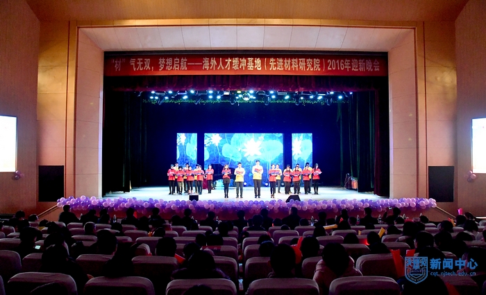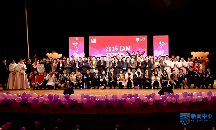 12月14日晚,海外人才缓冲基地(先进材料研究院)2016级迎新晚会“‘材’气无双,梦想启航”在江浦大礼堂精彩上演。今年适逢IAM团队落户南京十周年,晚会在剧场布置、节目策划、视频宣传上都有浓郁的IAM色彩。IAM学科带头人、校长黄维院士,校党委副书记、副校长高明教授,副校长崔益虎教授,副校长张进明教授,校长助理、党委组织部、统战部部长吴胜红教授,我校客座教授、新加坡南洋理工大学数理科学学院院长Yeow Meng CHEE教授、美国莱斯大学László Kürti博士,以及我校相关职能部门、学院负责人,与来自南工、南邮、新加坡南洋理工大学的师生代表们齐聚一堂,共同欣赏了这场温馨浪漫的迎新晚会。