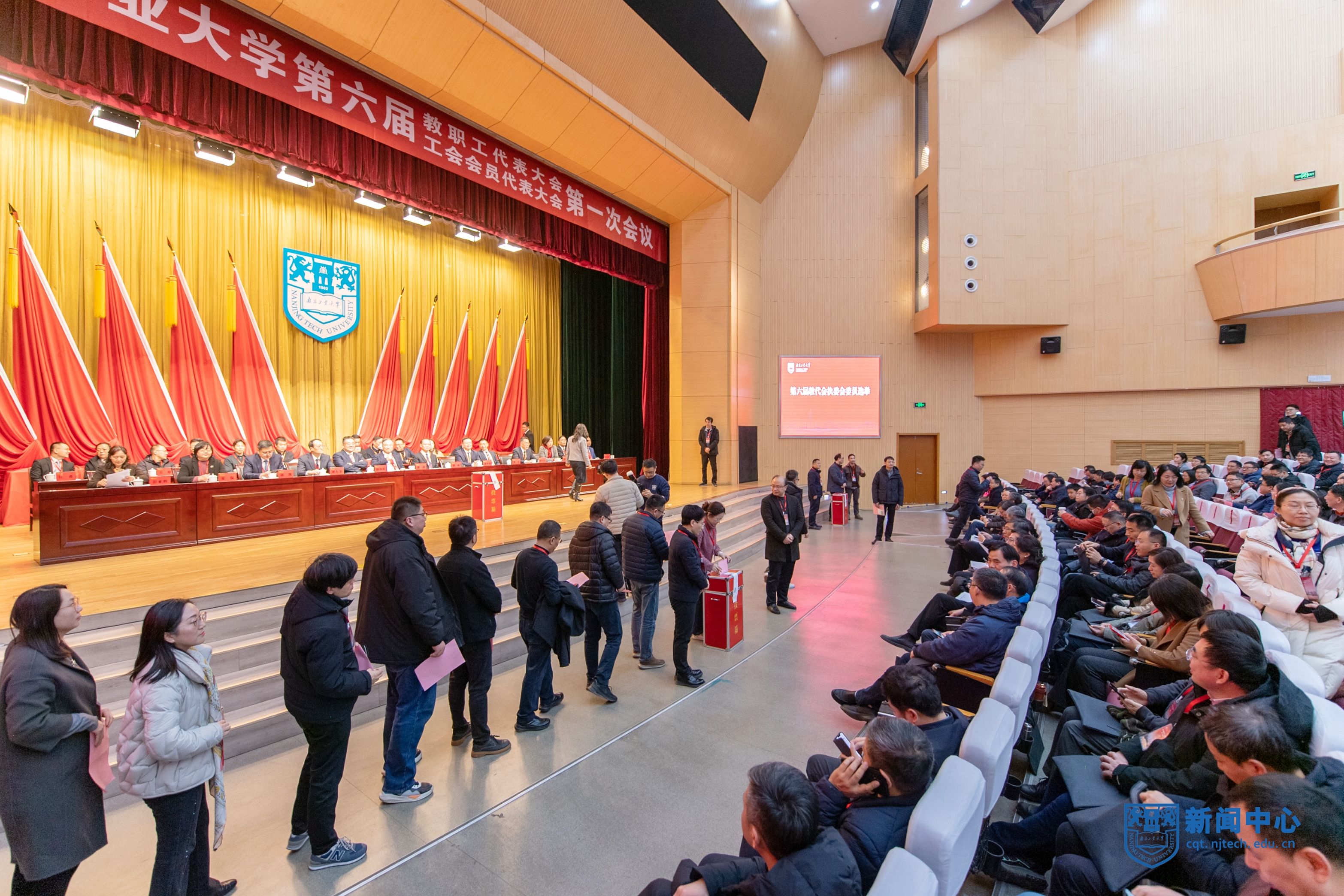 1月12日至13日,学校第六届教职工代表大会、工会会员代表大会第一次会议在江浦校区博雅堂召开。省教育科技工会副主席崔文华、高校部部长孙剑,全体校领导,331名教职工代表、83名工会会员代表出席会议。部分学校老领导、各民主党派主要负责人、无党派代表人士和各级人大代表、政协委员、老工会工作者应邀参加大会。