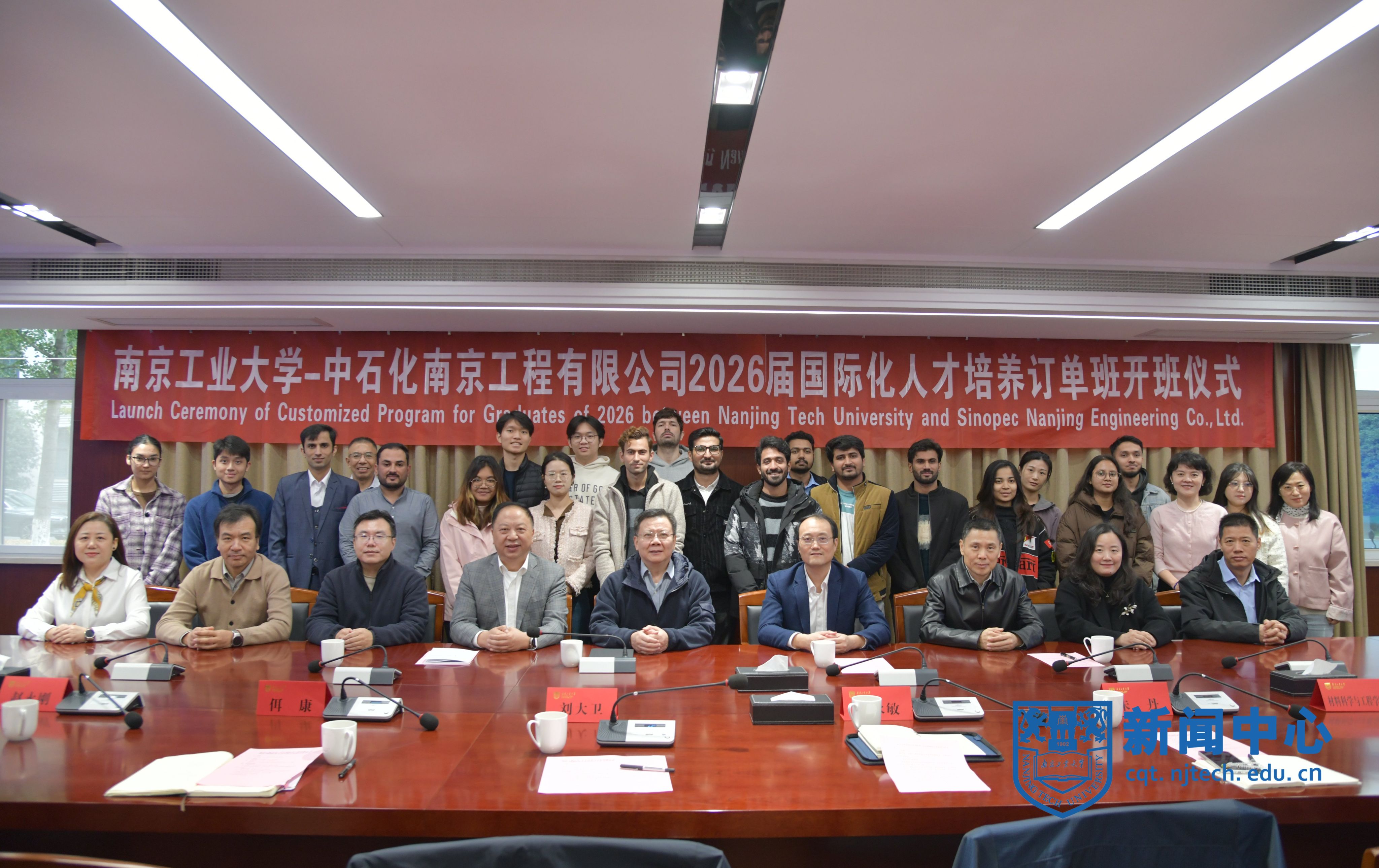 10月21日,我校与中石化南京工程有限公司在明正楼104会议室举行2026届国际化人才培养订单班开班仪式。中石化南京工程有限公司党委书记、执行董事周赢冠,副总经济师、党委组织部(人力资源部)部长陈云祥,校长蒋军成、副校长刘大卫出席仪式。仪式由海外教育学院党总支书记万永敏主持。