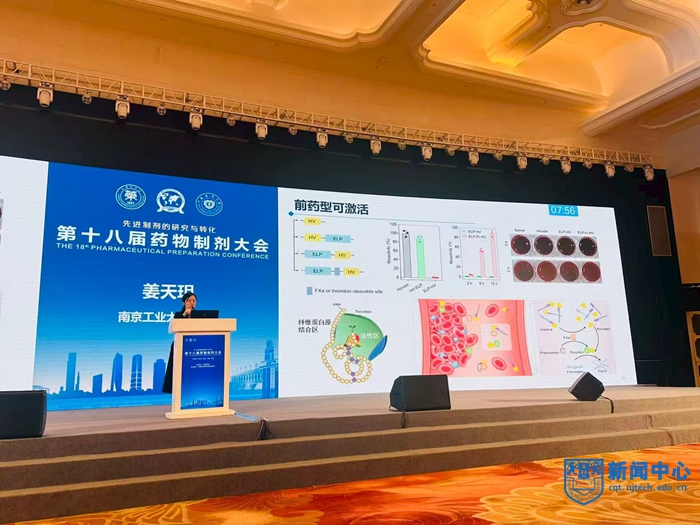 11 月 21日-23 日,由中国药学会主办、中国药学会药剂专业委员会承办的“第十八届药物制剂大会”在南京召开,本次大会以“先进制剂的研究与转化”为主题,汇聚海内外医药领域顶尖力量,助力推动药物制剂行业高质量发展。药学院姜天玥教授受邀参会,并作题为《基于融合蛋白自组装技术构筑蛋白药物贮库》的学术报告。