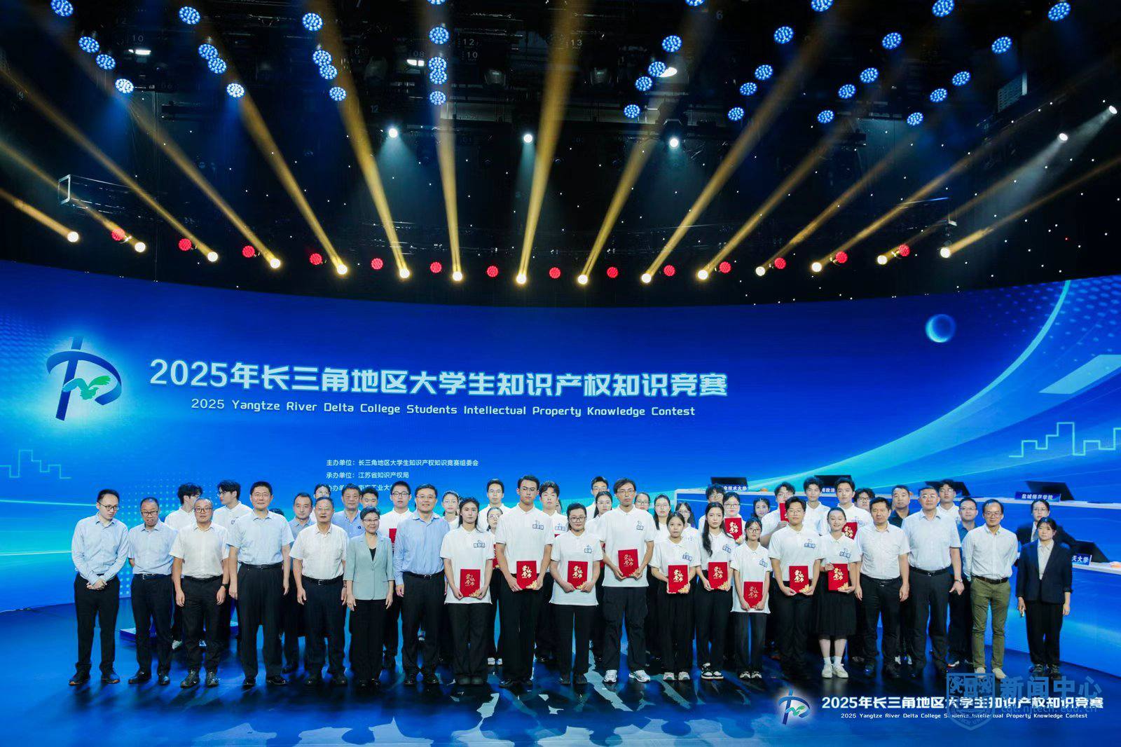 9月27日下午,2025年长三角地区大学生知识产权知识竞赛决赛在江苏电视台教育频道演播厅举办。本届竞赛由长三角地区大学生知识产权知识竞赛组委会主办、江苏省知识产权局承办、我校协办。江苏省知识产权局局长李杰出席活动并致辞。来自长三角地区知识产权管理部门、相关高校、公证机关、知识产权领域专家及新闻媒体等近200人现场观摩比赛,53万人次通过网络直播观看比赛。