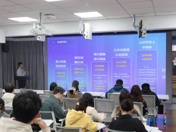 宣讲会上,格力电器工业设计中心的宣讲代表喻康围绕公司概况、发展历程、企业文化、产品体系、人才培养计划及招聘流程等内容进行了详细介绍。作为“国家级工业设计中心”建设基地,格力电器多次斩获国际设计大奖,并与国内外知名设计展会保持紧密合作,始终重视人才的系统培养与职业发展。喻康针对学生普遍关注的岗位需求、职业发展路径等问题作出解答,鼓励同学们把握机遇,投身设计创新实践。