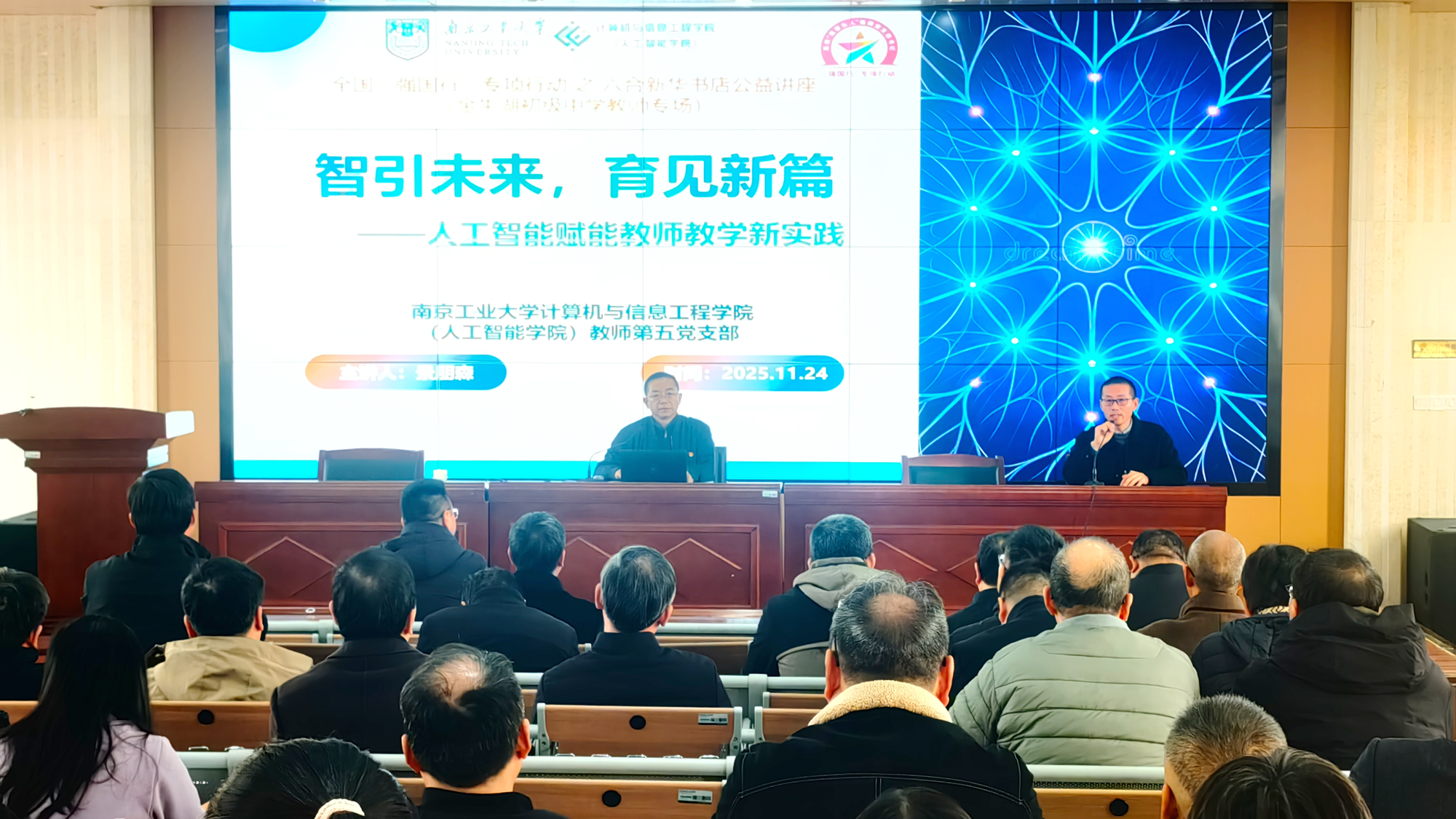 11月24日,计算机与信息工程学院(人工智能学院)教师第五党支部联合江苏凤凰新华书店集团有限公司六合分公司党支部,赴六合区金牛湖初级中学开展“智引未来,育见新篇——人工智能赋能教师教学新实践”专场公益讲座。该校校领导及50余名中青年教师参加活动。