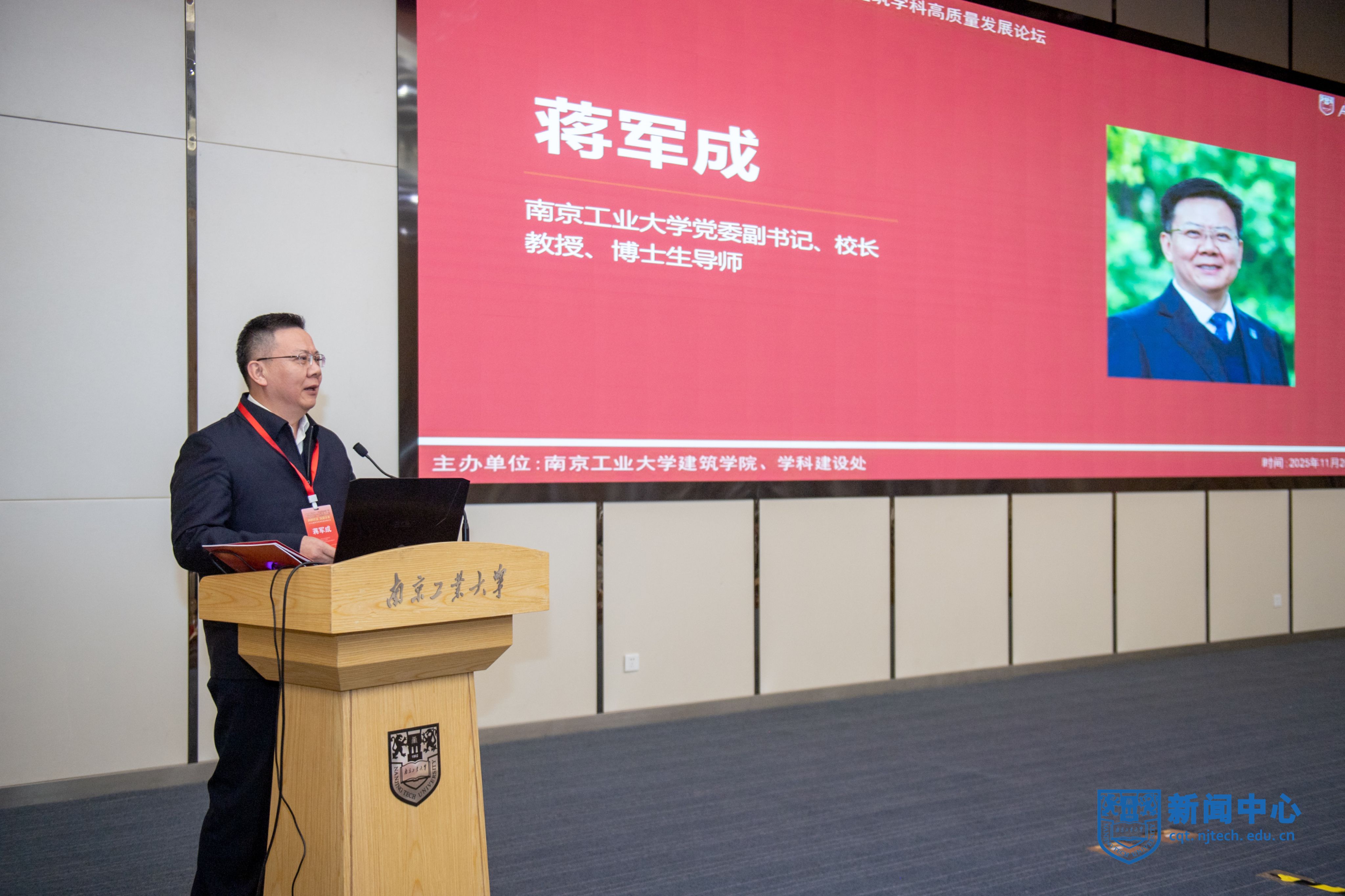 11月28日,恰逢建筑学科办学40周年之际,建筑学院在弘毅楼五楼报告厅举办2025建筑学科高质量发展论坛。中国工程院院士、东南大学教授王建国,南京市人大常委会副秘书长叶斌,江苏省住建厅副厅长路宏伟,南京市建委副主任徐淮舟出席论坛。校长蒋军成出席论坛并致辞。校纪委书记曹杰、副校长陆伟东及清华大学、东南大学等知名高校代表,原住建部直属高校代表,长三角地区建筑院校代表,在宁用人单位代表,学校相关部门代表、校友、师生齐聚一堂,共话建筑学科高质量发展新路径。