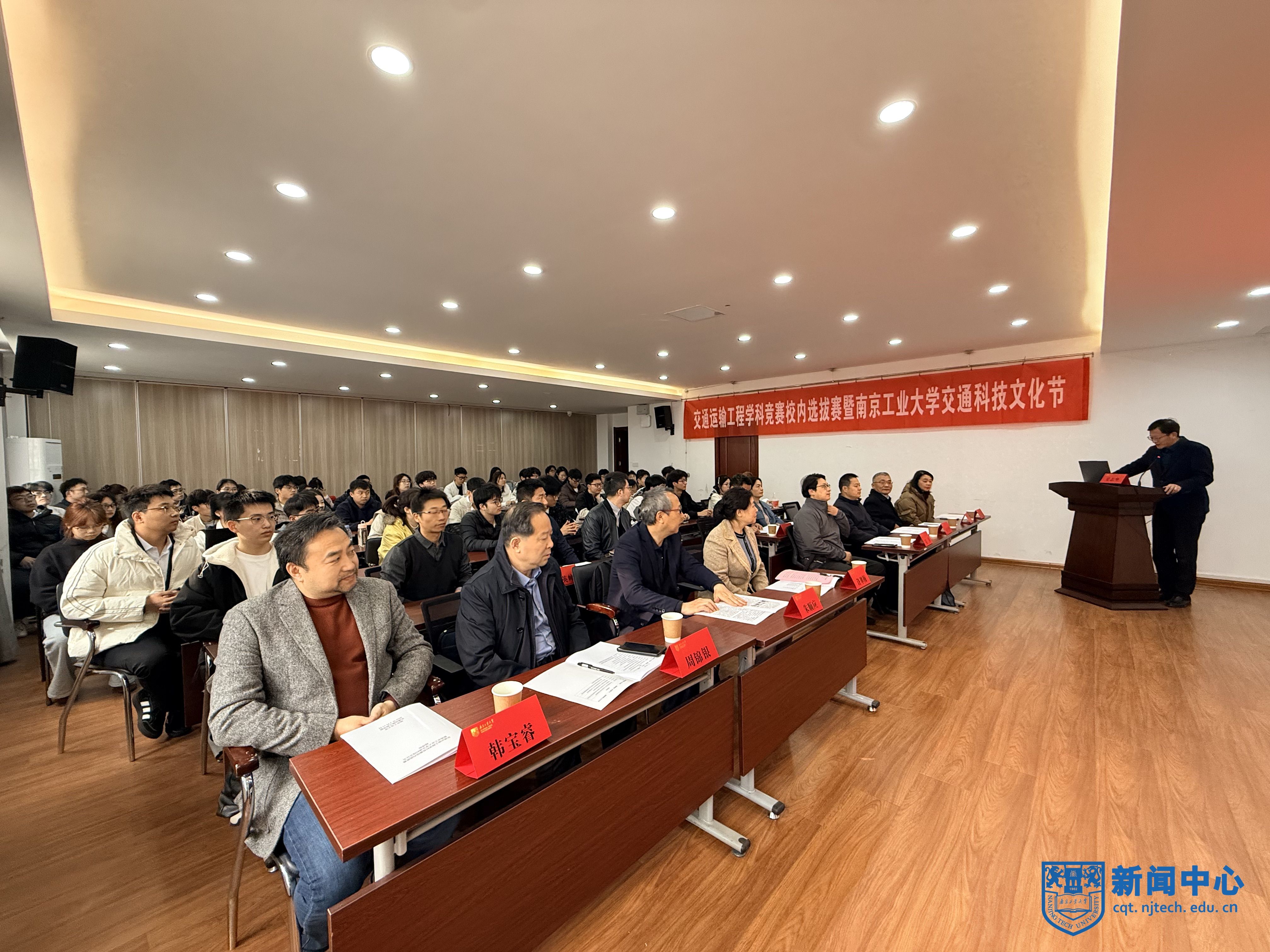 为全力备战交通运输工程学科省赛及国赛,3月23日,我校在天工楼530、535会议室举办2026年交通运输工程学科竞赛暨交通科技文化节。武汉理工大学朱顺应教授、东南大学夏井新教授、南通大学徐勋倩教授、江苏大学生交通科技大赛组委会秘书长韩宝睿、《现代交通与冶金材料》期刊主编周锦银、我校教务处副处长吴菲、交通运输工程学院党委书记许翠梅等参加活动。副院长吴志坚主持开幕式。