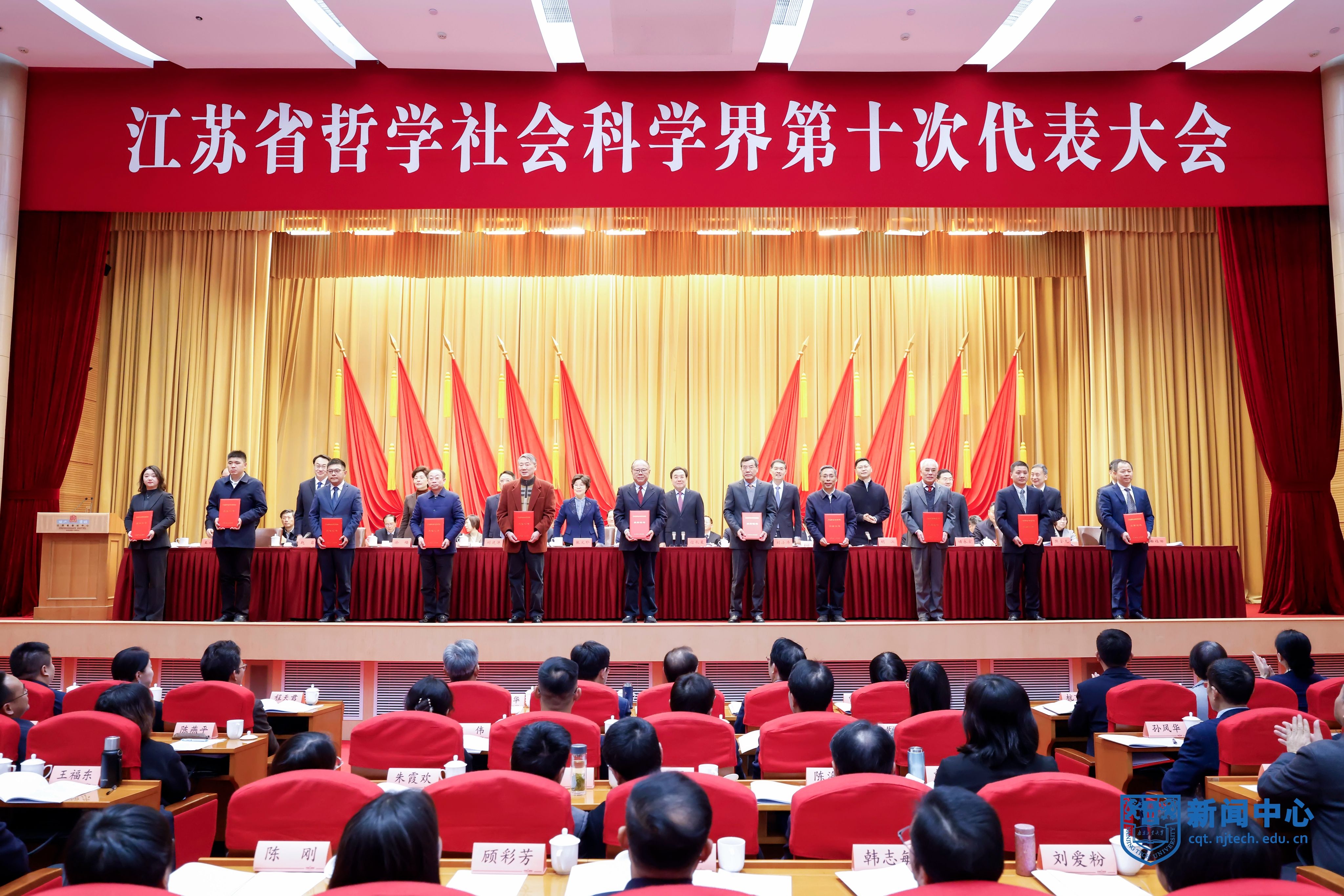 12月26日至27日,江苏省哲学社会科学界第十次代表大会在南京召开,省委书记、省人大常委会主任信长星,全国哲学社会科学工作办公室主任胡滨出席开幕会并讲话。省长刘小涛、省政协主席张义珍出席。大会根据《章程》和选举办法,选举产生了由335人组成的江苏省社科联第十届理事会,省委常委、省委宣传部部长徐缨当选理事会主席,我校党委书记荆晅等67人当选常务理事。会上为省第十八届哲学社会科学优秀成果奖获奖代表颁发证书,我校陈红喜教授作为省哲学社会科学优秀成果奖一等奖获奖代表上台领奖。