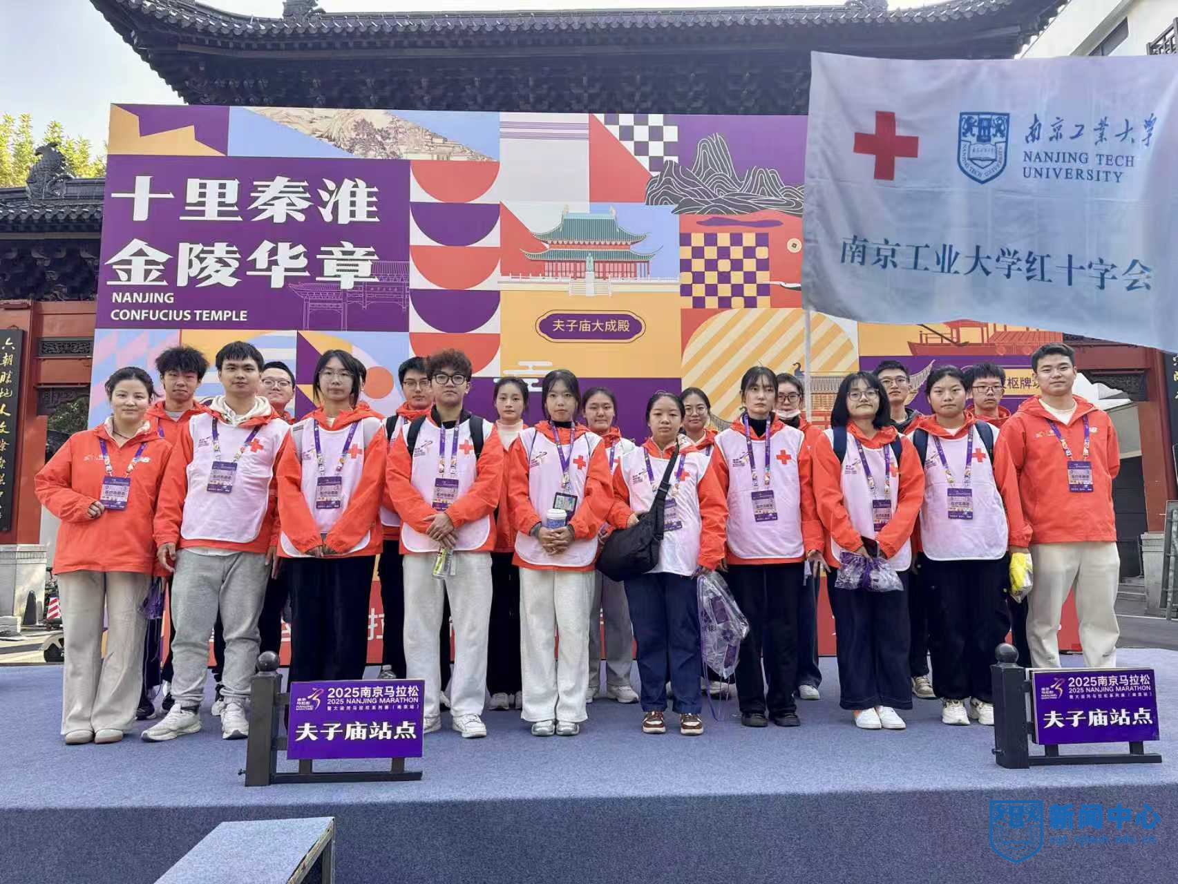 11月16日,2025南京马拉松在晨曦中鸣枪开赛,我校100余位大学生医疗志愿者参与并圆满完成赛事医疗保障任务。