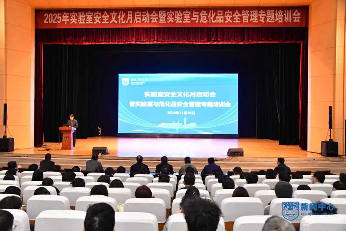 11月19日,学校在博雅堂举办2025年实验室安全文化月启动会暨实验室与危化品安全管理专题培训会,副校长戴志晖出席会议。实验室建设与管理处副处长吴杰主持培训会。