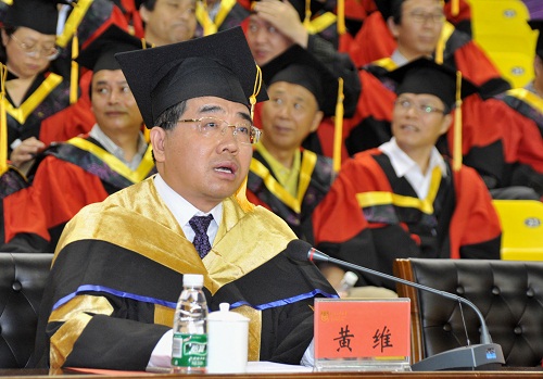 “因天人相应而生,孕人文精神而丰。”中国科学院院士、校长黄维院士一开口便引经据典,由端午假日的毕业典礼而谈到屈原和诗歌。他认为,这也是继承和弘扬传统的一部分,因为屈原是伟大的政治家和爱国者,他的诗情感涌发、酣畅淋漓。由屈原的《离骚》到中华经典之《诗经》。“中华文化有个传统,弟子临行之时,作为师长应赠语寄别,谆谆教诲、依依话别。今天,我就把这‘兴’‘观’‘群’‘怨’四个字送给大家,希望大家有情怀、有判断、有担当、有思考,支撑和丰满你们的人生。”