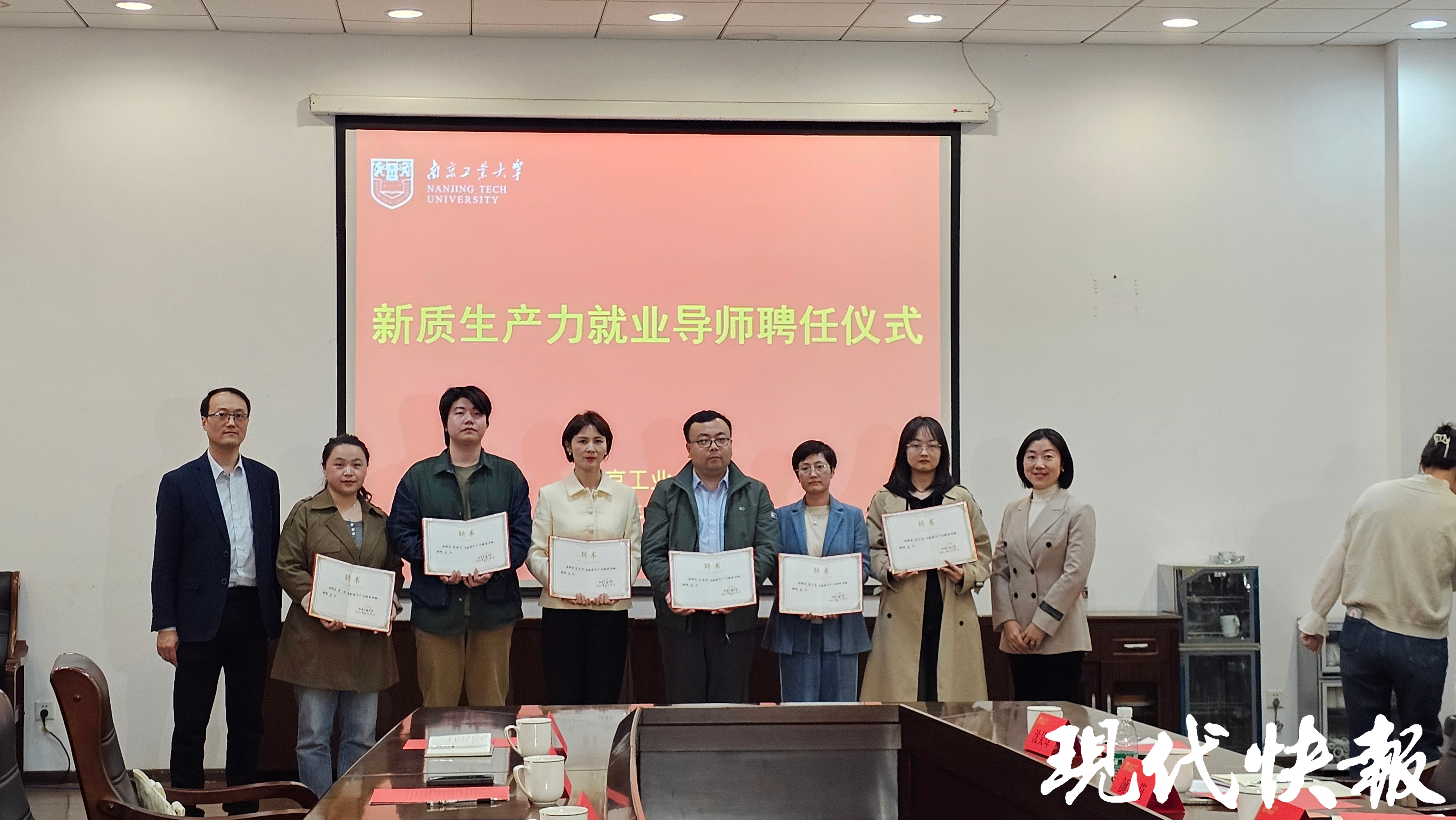 值得一提的是,当天南京工业大学还举办了新质生产力就业导师聘任仪式,为6家企业的人力资源经理颁发“新质生产力就业导师”证书。江苏原力数字科技股份有限公司人事经理张继方就是其中之一。“学生可以去我们公司体验三个月到半年的工作。”张继方说,在这个过程中,企业导师将通过实际工作引导学生构建知识体系,培养他们工作所需的综合能力,为他们的职业发展提供有力支持。