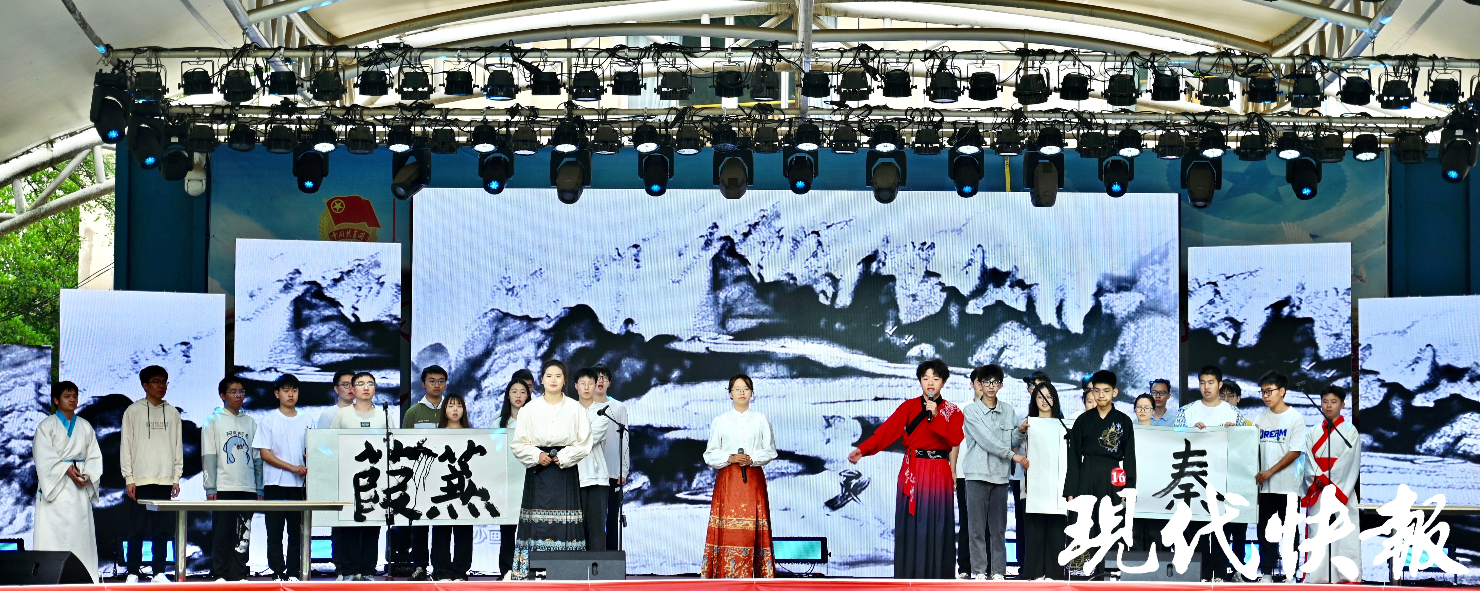 这场青春盛会是南工大全体大学生的聚会,同学们以团支部为单位,以诵读诗歌的方式,设计舞台表演。他们或手持诗卷,用饱满的热情诵读着古典诗词;或身着精美的汉服,翩翩起舞,仿佛穿越时空,与古人对话;或挥毫泼墨,通过一笔一画,流露出中华优秀传统文化的韵味……舞台上的他们,时而激昂高亢,时而柔情似水,在中华优秀传统文化的浸润下,将青春的热情和活力展现得淋漓尽致。
