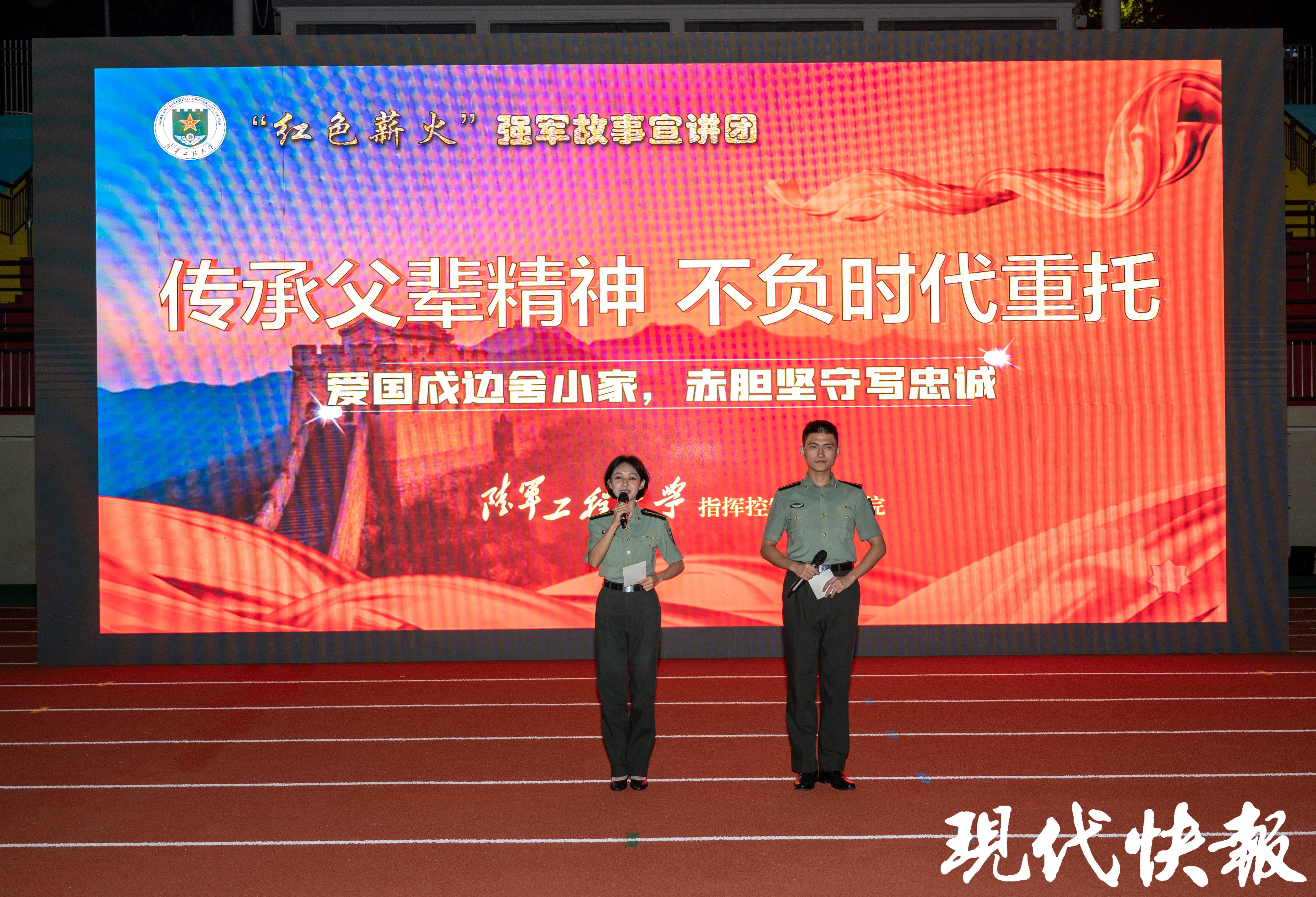 9月21日晚上,陆军工程大学“红色薪火”强军故事宣讲团在南工大为全体2024级新生进行红色宣讲。宣讲团成员支睿颍说,进入军校成了她理解父亲最好的“词典”,她的父亲将青春热血洒在藏北高原和喀喇昆仑的千里边防线,用生命赴使命,取得了边防反制、反击特大暴恐案件等行动的胜利;宣讲团成员郭鑫淼毅然接过父亲手中的钢枪,继续走在父亲走过的雪域高原上,为国戍守边境;宣讲团成员王译翎的父亲是一名人民海军潜艇艇长,他在潜艇部队的三十多年,把最美的青春献给了潜艇事业,而他自己也在与父辈相仿的年纪进入了军校;对于宣讲团成员黄静蕾来说,一双双军鞋让她了解了父辈从喀喇昆仑山的坚守到非洲刚果(金)的维和使命,再到武汉抗击疫情的英勇斗争,理解了中国军人的荣耀与牺牲,她将穿好“鞋”走正路,一步一个脚印走踏实,与父辈共同肩负起保家卫国的神圣使命……
