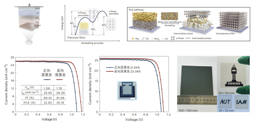 近日,南京工业大学柔性电子(未来技术)学院、柔性电子全国重点实验室黄维院士团队在全真空热蒸发钙钛矿光伏器件的研究中取得重大突破。10月21日,相关成果以“基于反向逐层沉积的全真空热蒸发钙钛矿太阳能电池”为题发表在《自然·光子学》。博士生徐雨田为论文第一作者,通讯作者为黄维院士、陈永华教授、夏英东教授和郭庆勋副教授。