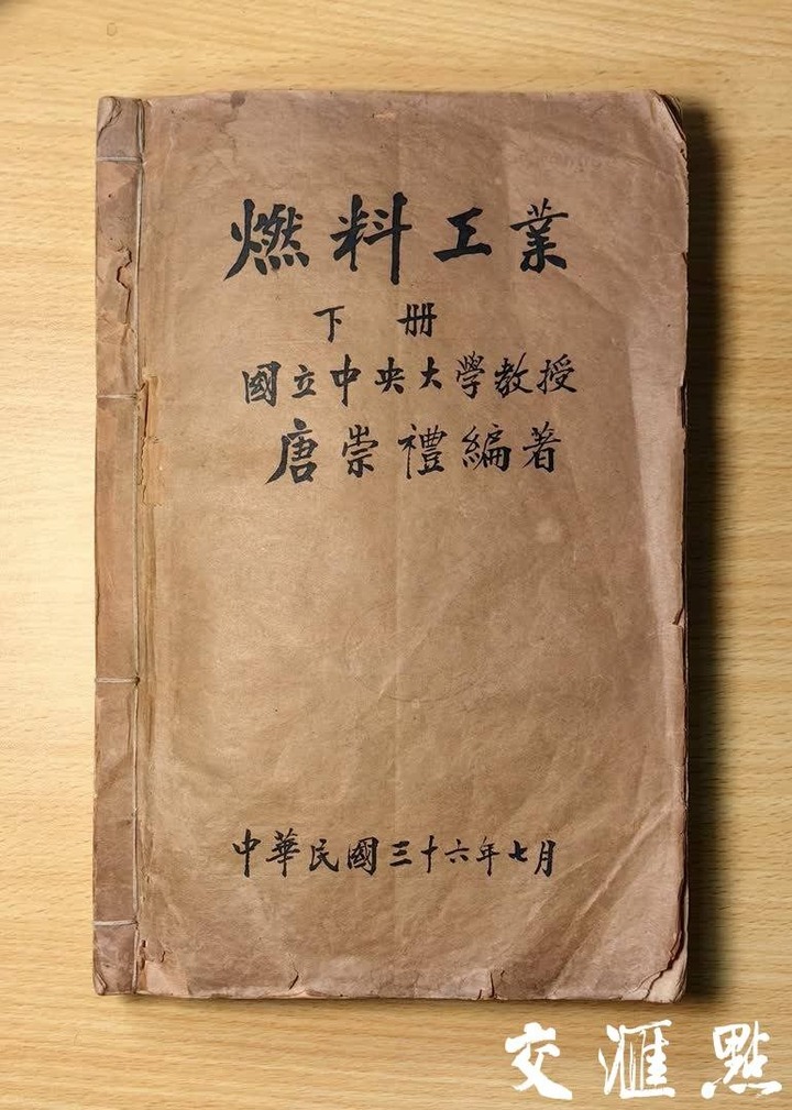 这本静静躺在展柜中的教材,是我国著名无机化学家唐崇礼教授于1947年亲笔撰写的《燃料工业》下册。因上册至今尚未寻获,这份孤本更显珍贵。