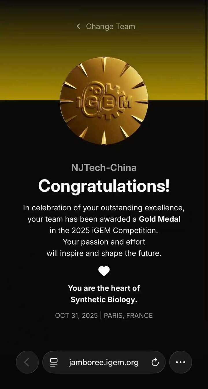 团队队长朱楚宁同学介绍,NJTech-China团队是一支典型的跨学科队伍,师生来自生工、计算机、机械、艺术等学院。项目中,他们构建了“干实验”与“湿实验”双轨并行的研发策略,形成“设计-构建-验证-优化”的闭环,极大提升了研发的精准性与效率。