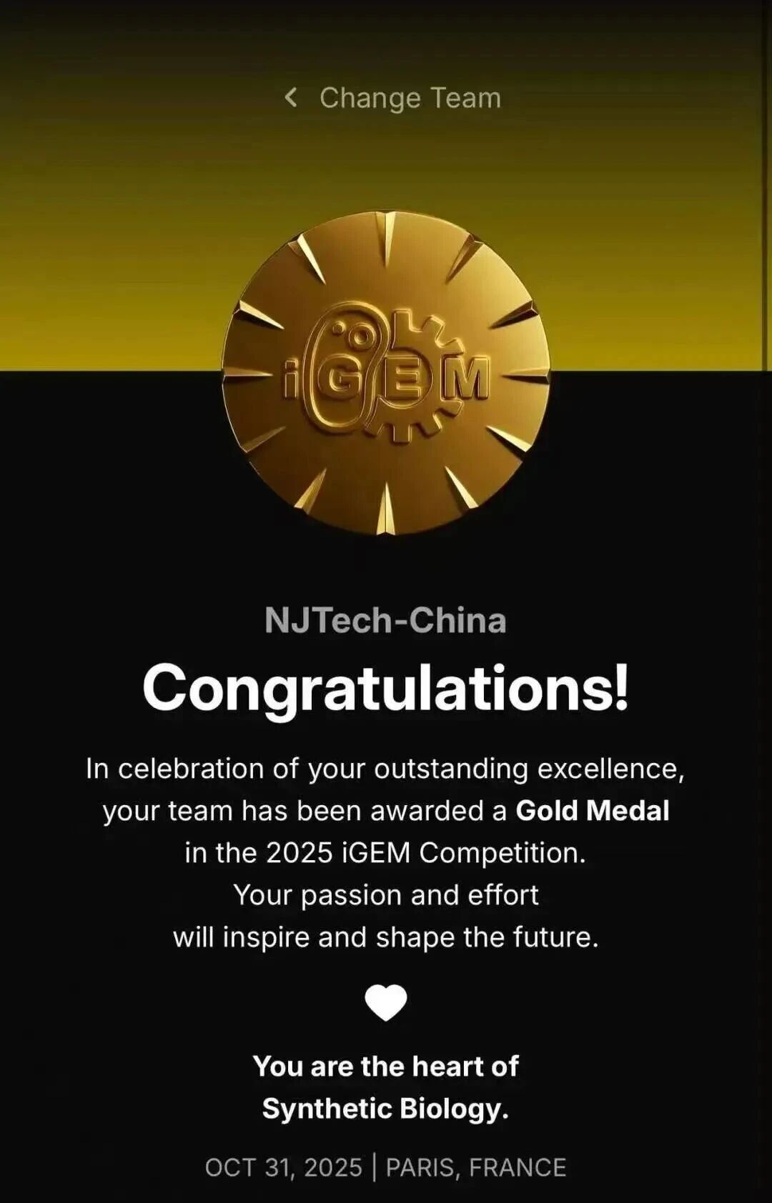 近日,2025年国际基因工程机器大赛(iGEM)在法国巴黎落下帷幕。南京工业大学NJTech-China、NJTECH-CHINA-A两支队伍聚焦友好环境、绿色发展,在与全球400余支高校代表队的角逐中表现优异,双双斩获全球金奖,在世界竞技舞台彰显了聚力创新的实力和团结协作的风采。