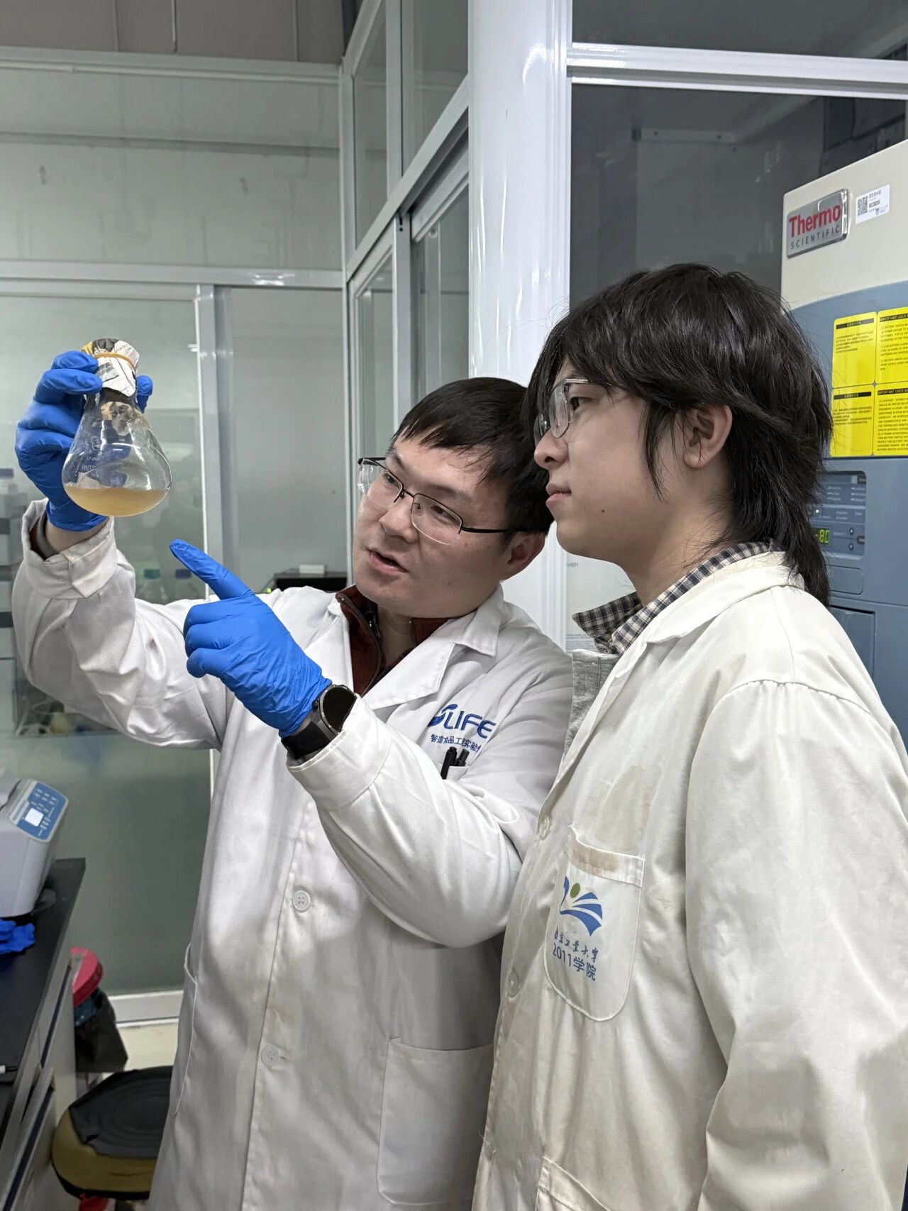“传统方法的麻烦在哪?”指导老师冯娇副教授介绍道,以前制造聚酰胺54得请“两个不同的微生物团队”干活,一个团队专门造尸胺,另一个专门造琥珀酸。“就像做饭,得去A厨房蒸馒头,再去B厨房炖排骨,流程长且复杂,且两者工作时还会浪费资源,产生没用的废弃物。”指导老师许晟副教授形象地补充道:“我们是把以前两个各自生产、浪费严重的作坊,变成了一个高效、自给自足,还能‘内部消化垃圾’的‘全能一体厨房’。”